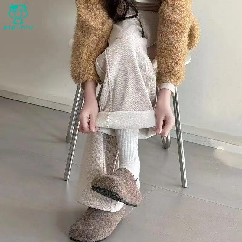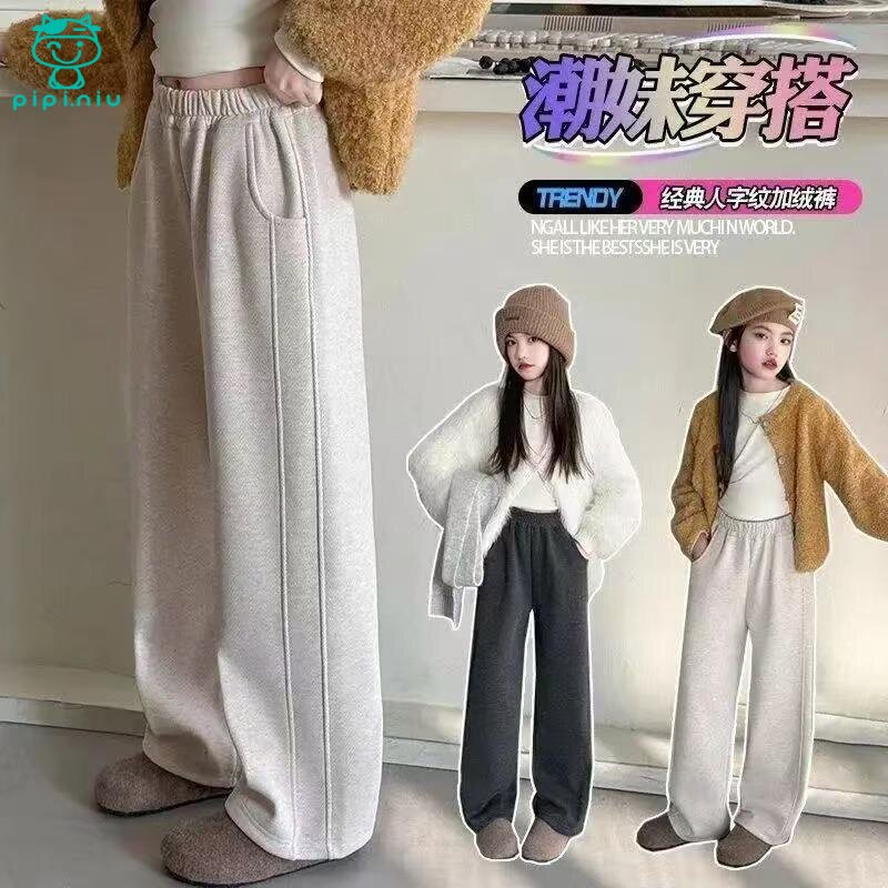 女童加绒裤子秋冬款儿童休闲裤中大童春秋款一体绒加厚直筒阔腿裤
