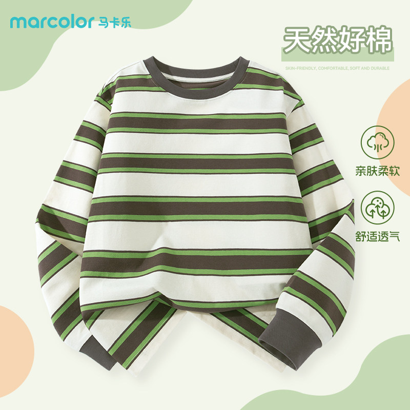 马卡乐童装男童长袖t恤春季儿童薄款宽松休闲打底衫女孩条纹上衣