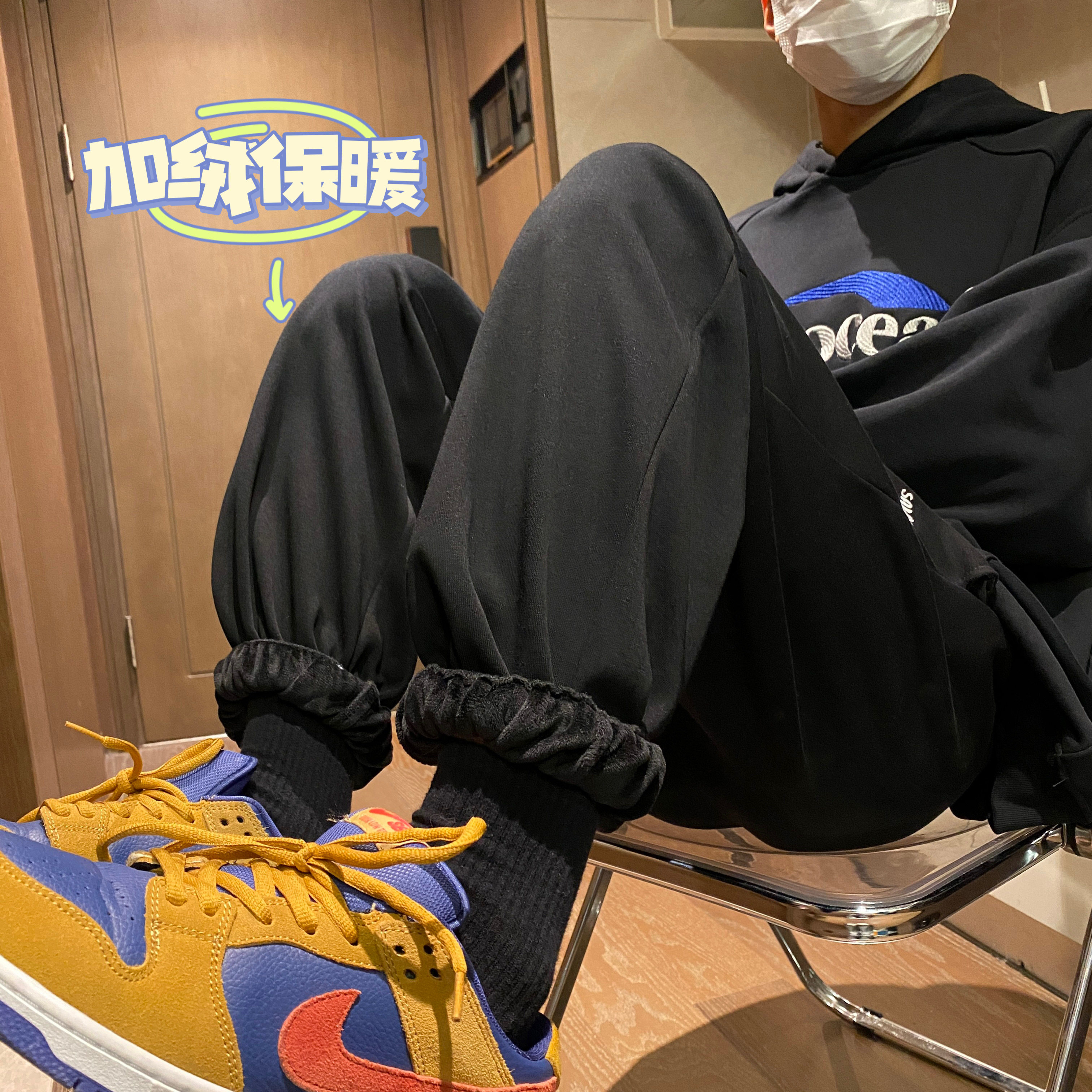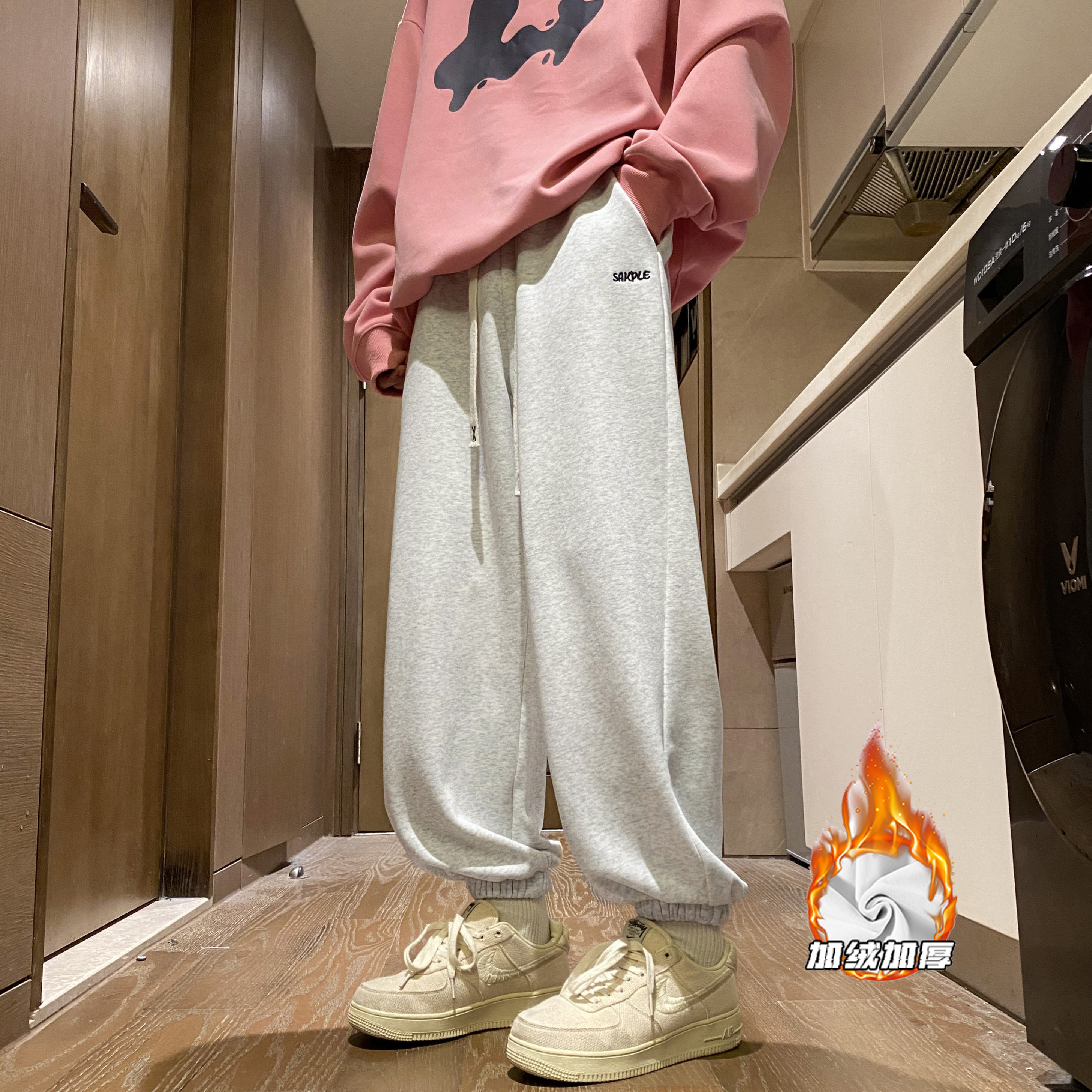 裤子男冬季潮牌灰色束脚运动卫裤加绒加厚保暖青少年宽松休闲长裤