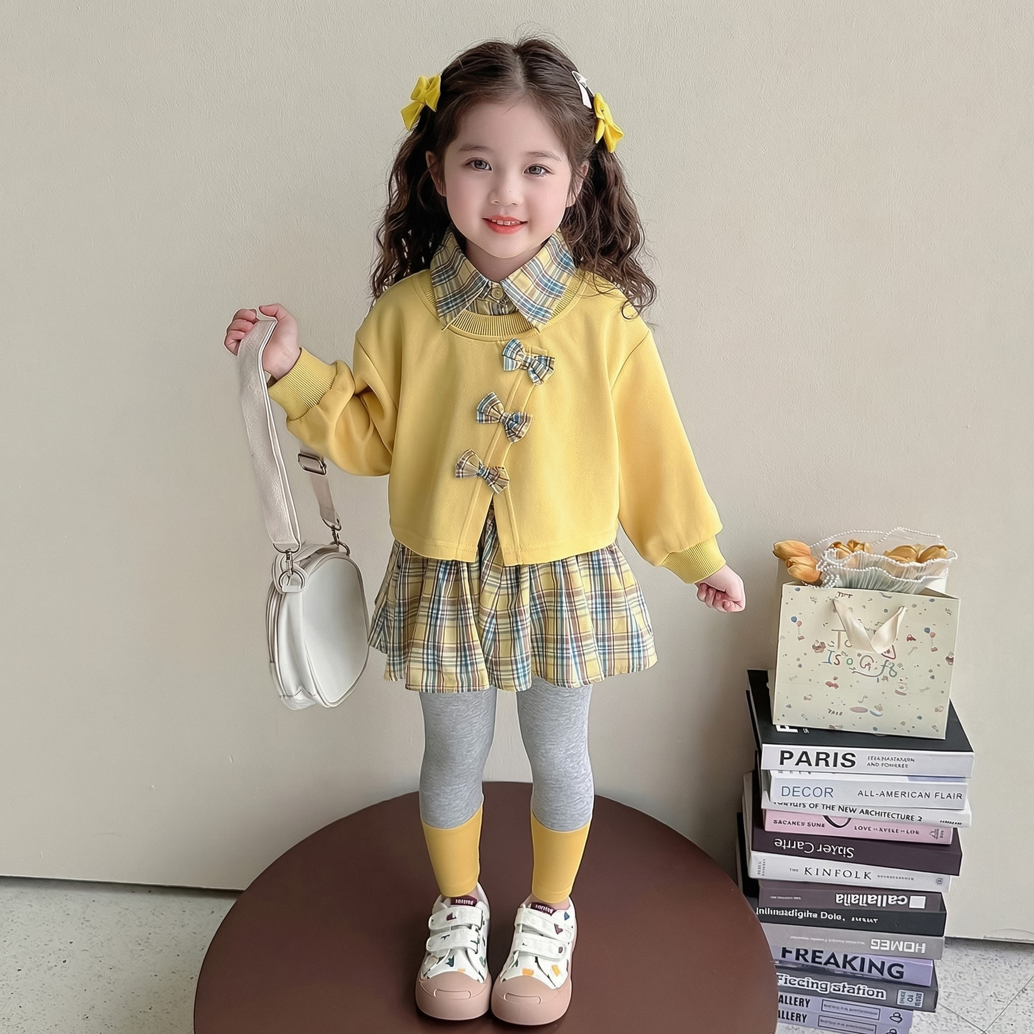 女童春秋蝴蝶结套装2026新款洋气时髦儿童女宝宝春季春装早春卫衣
