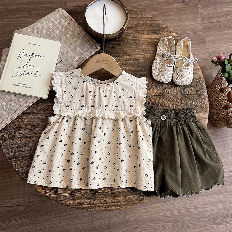 森系女童无袖夏套装2026新款洋气时髦女宝宝背心儿童夏款衣服女孩
