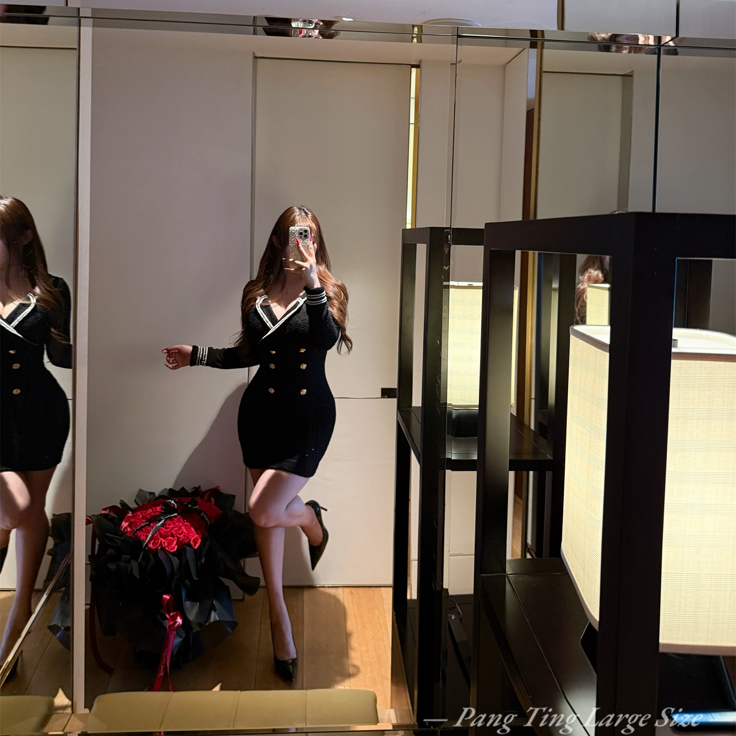 胖婷大码定制胖mm「韩系贵女」韩女千金小香风收腰修身连衣裙短款