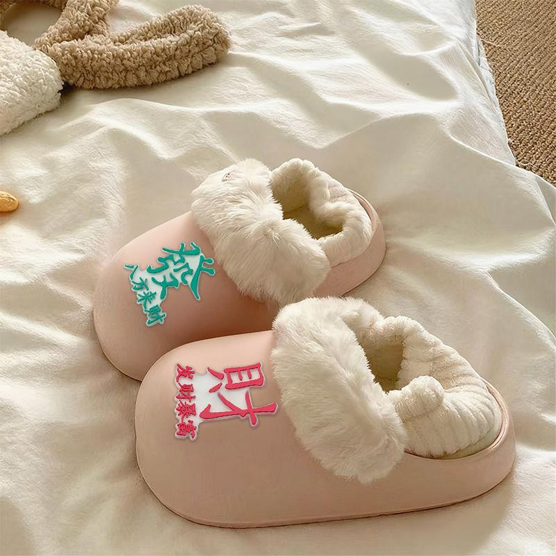 棉拖鞋女款冬季新款外穿增高跟防水防滑可爱卡通厚底包头防滑棉鞋