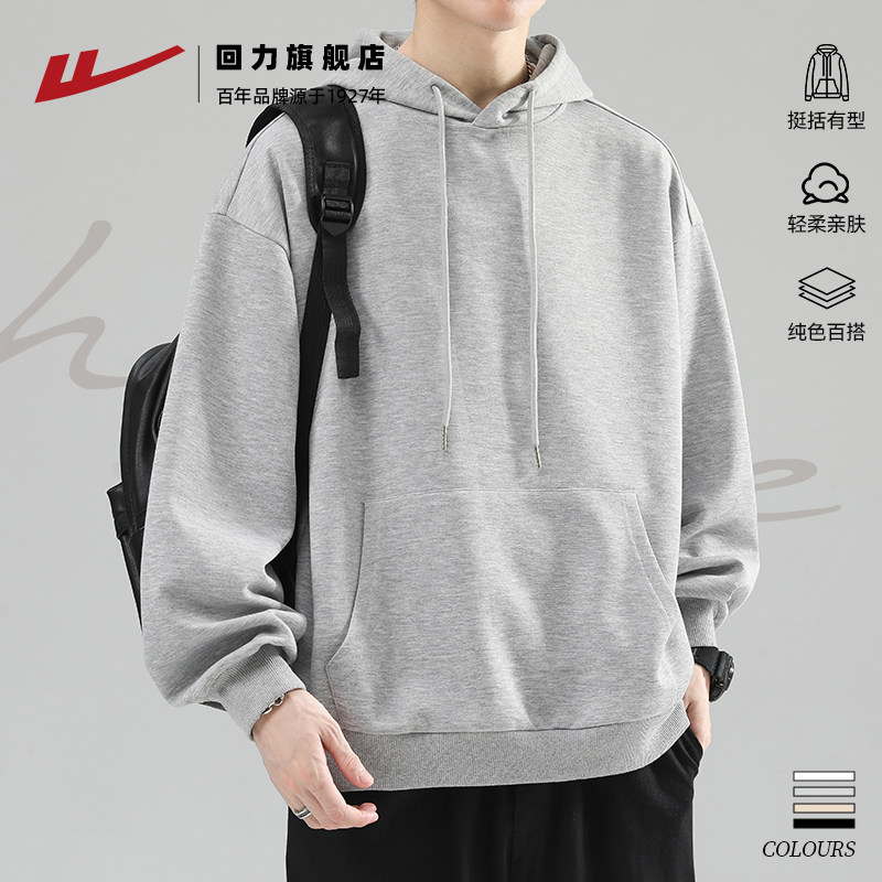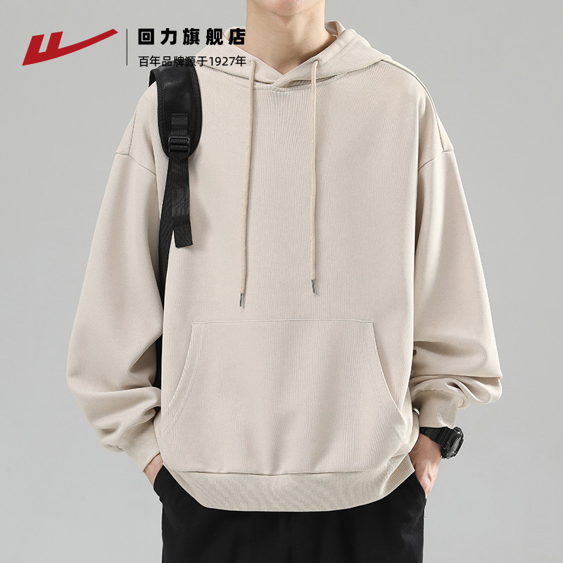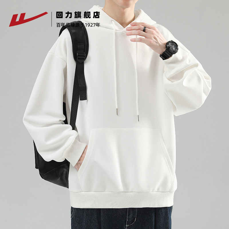 回力连帽卫衣男款春秋季2024新款青少年秋季上衣黑色美式重磅外套