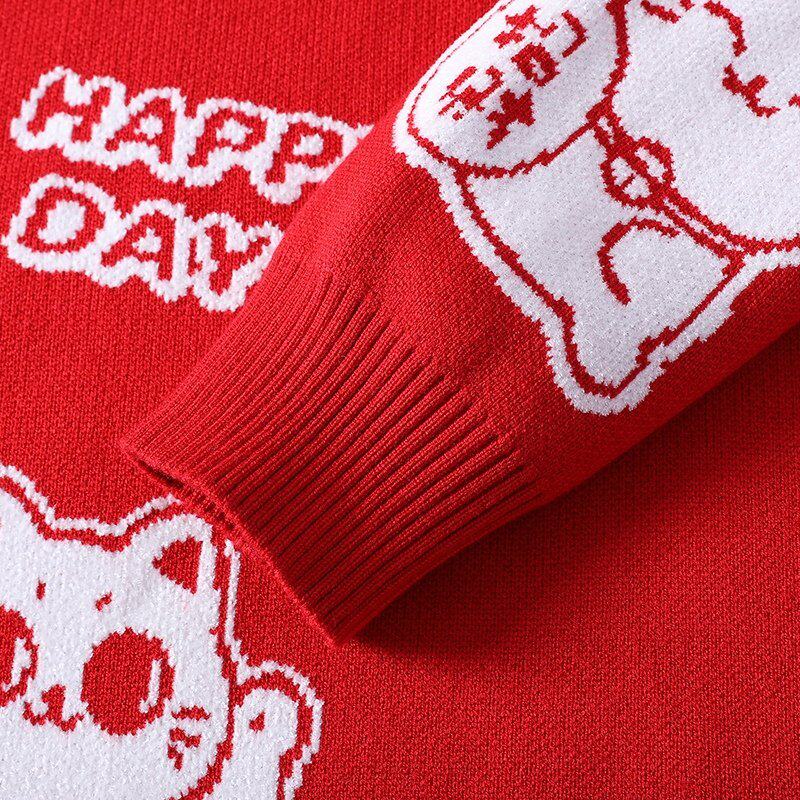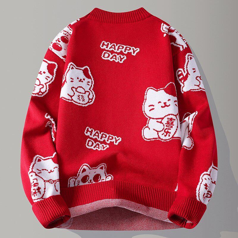 以本命年大红色毛衣男款秋冬季加厚高级感针织外套马年情侣线衣純