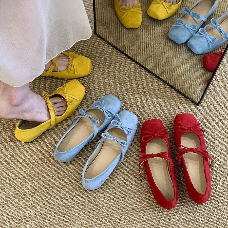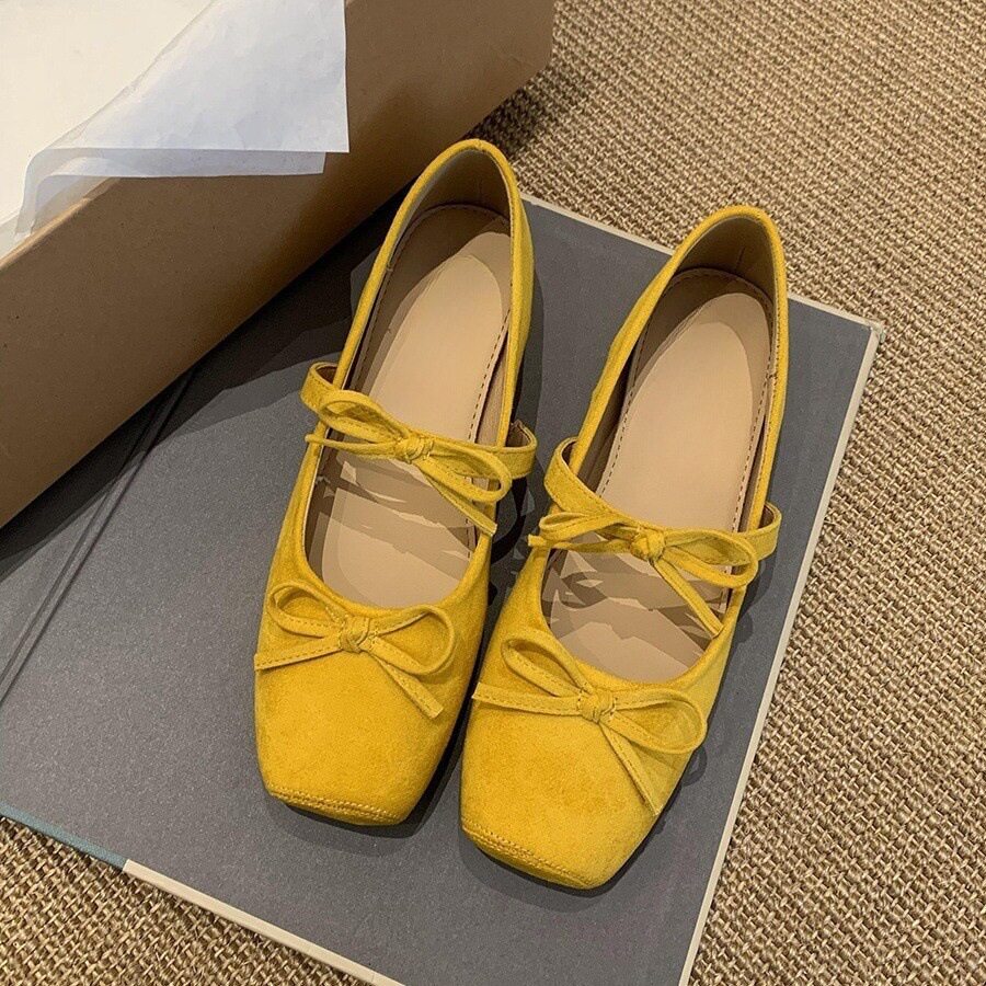 内增高蝴蝶结黄色玛丽珍单鞋女鞋子春夏季配裙子复古芭蕾舞鞋