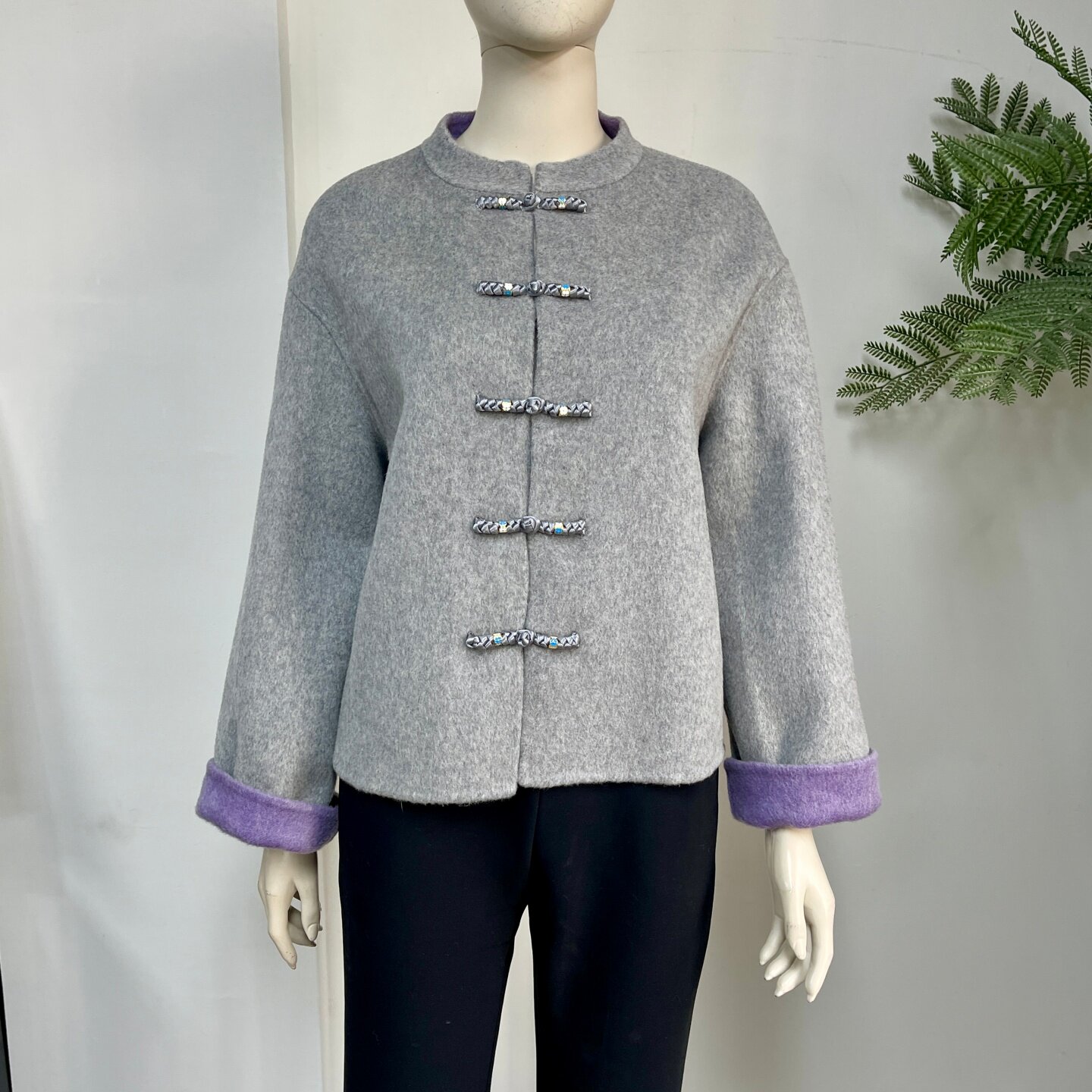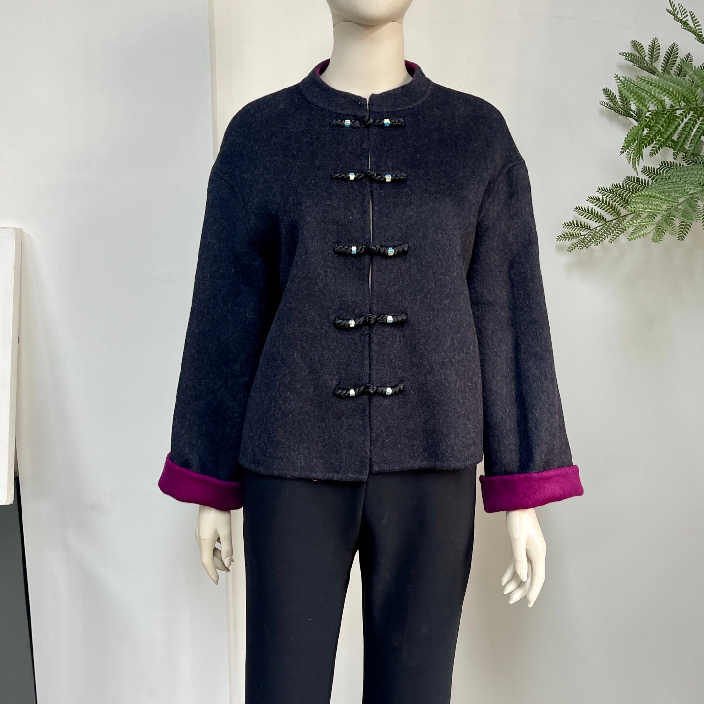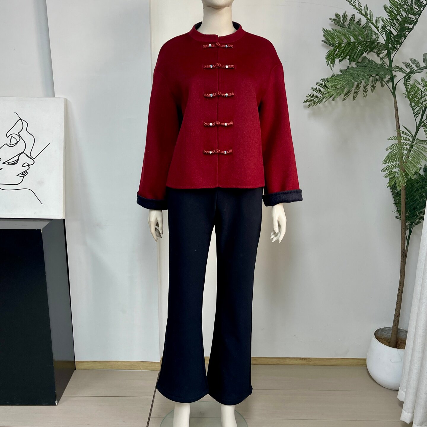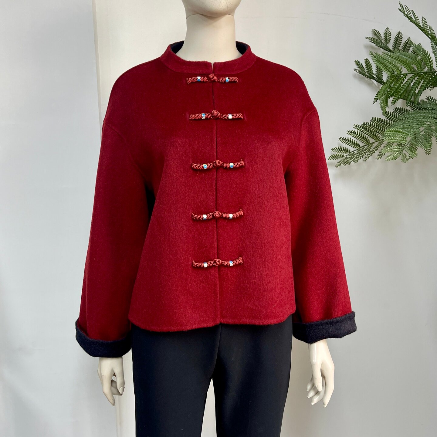新中式妈妈装100%双面羊毛外套冬季喜婆婆国风高贵红色短款呢大衣