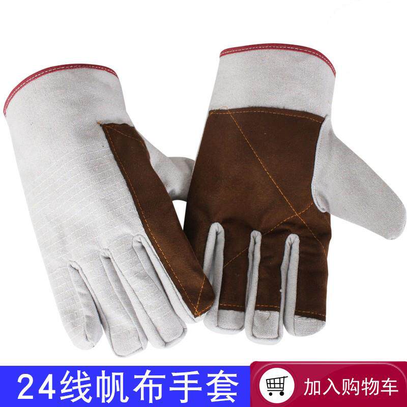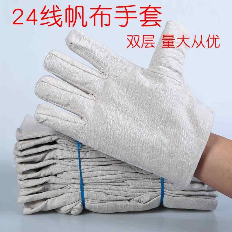 耐用劳保手套24线双层全衬帆布机械工作手套耐磨加厚电焊工厂家批