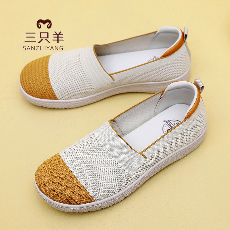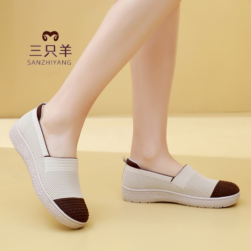 三只羊2026夏季镂空网面女透气一脚蹬舒适休闲织物软底妈妈鞋健步