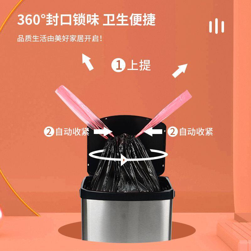 加厚垃圾袋抽绳手提家用大号宿舍办公厨房自动收口塑料袋结实耐用