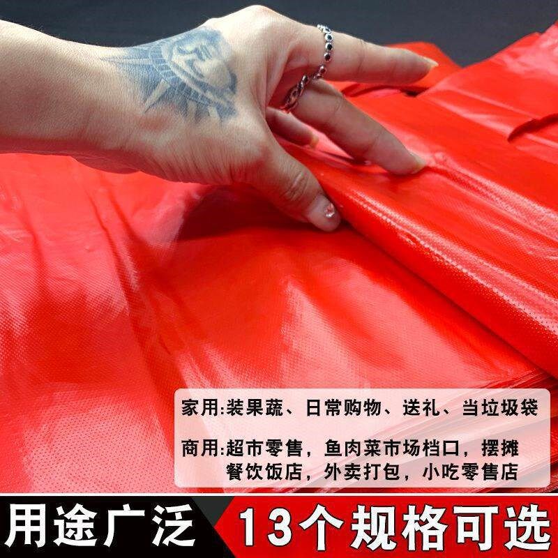 按斤称红色垃圾袋拉收i袋特厚手提加厚大号塑料袋子结实耐用