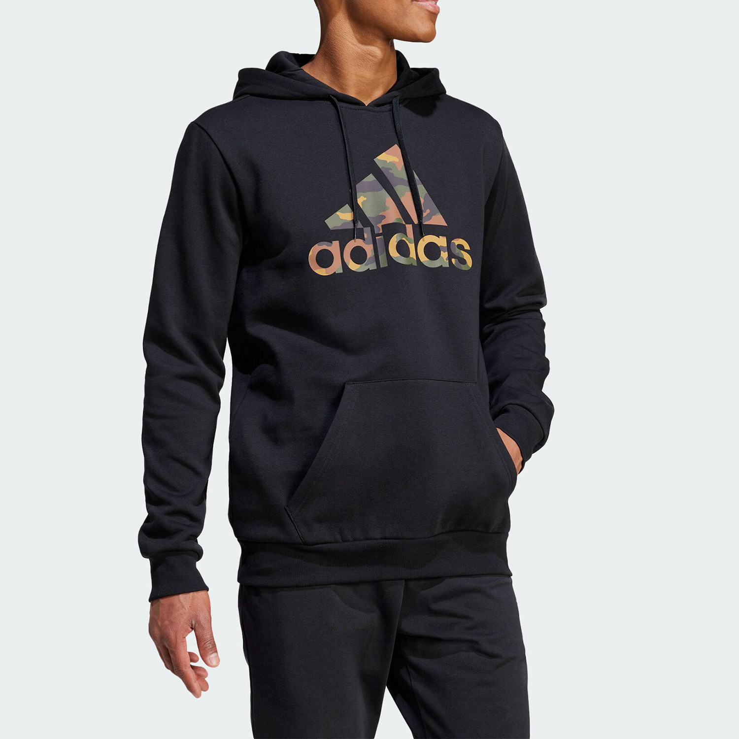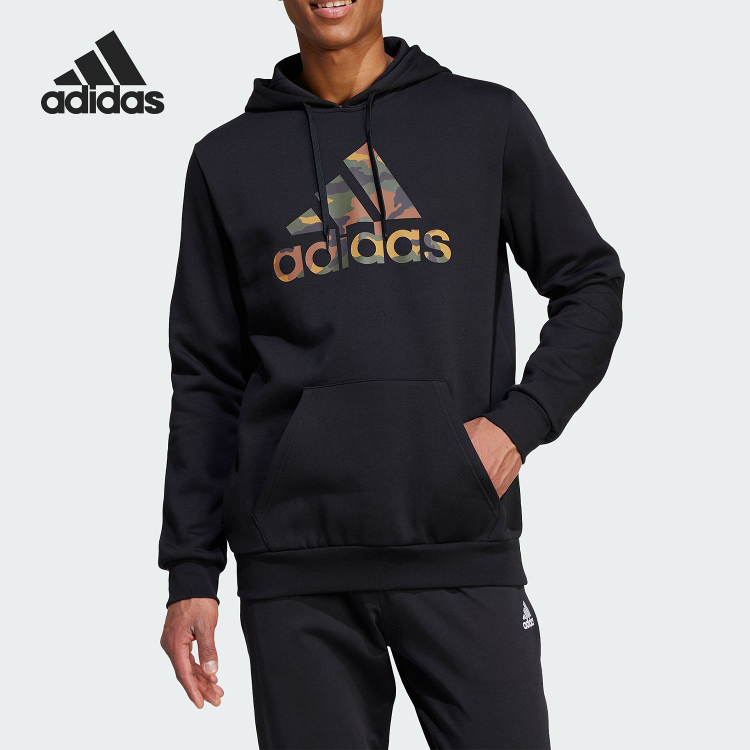 Adidas阿迪达斯正品加绒卫衣男款冬季新款保暖连帽运动休闲套头衫