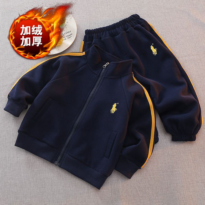 儿童加绒银狐绒套装2026秋冬男女童日系潮牌宝宝两件套休闲运动装