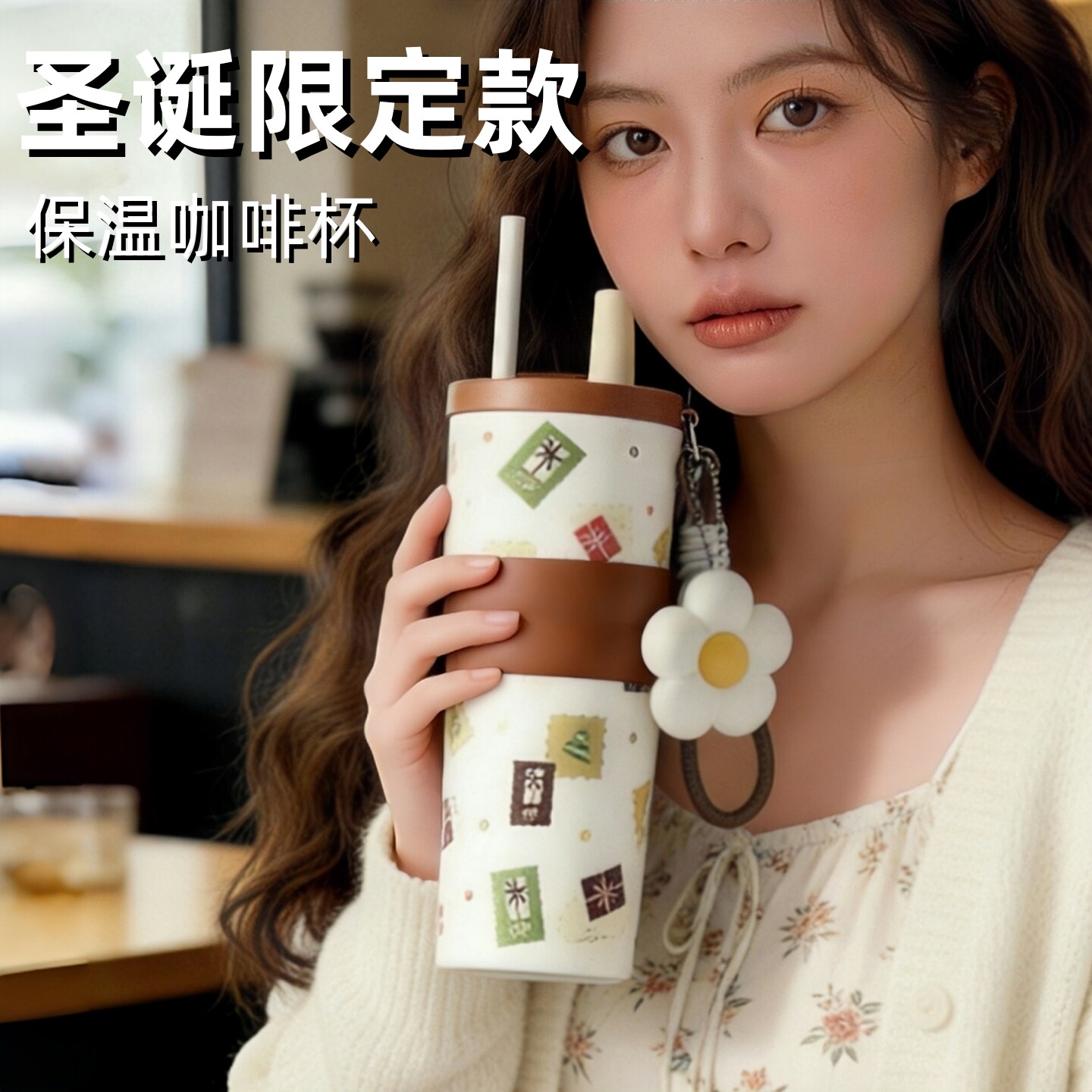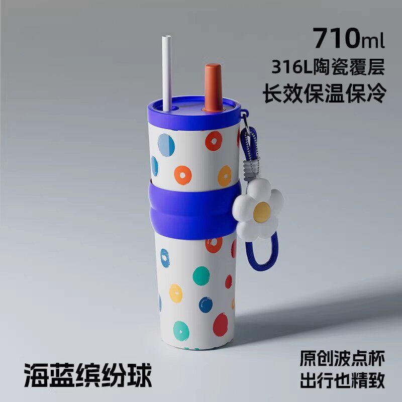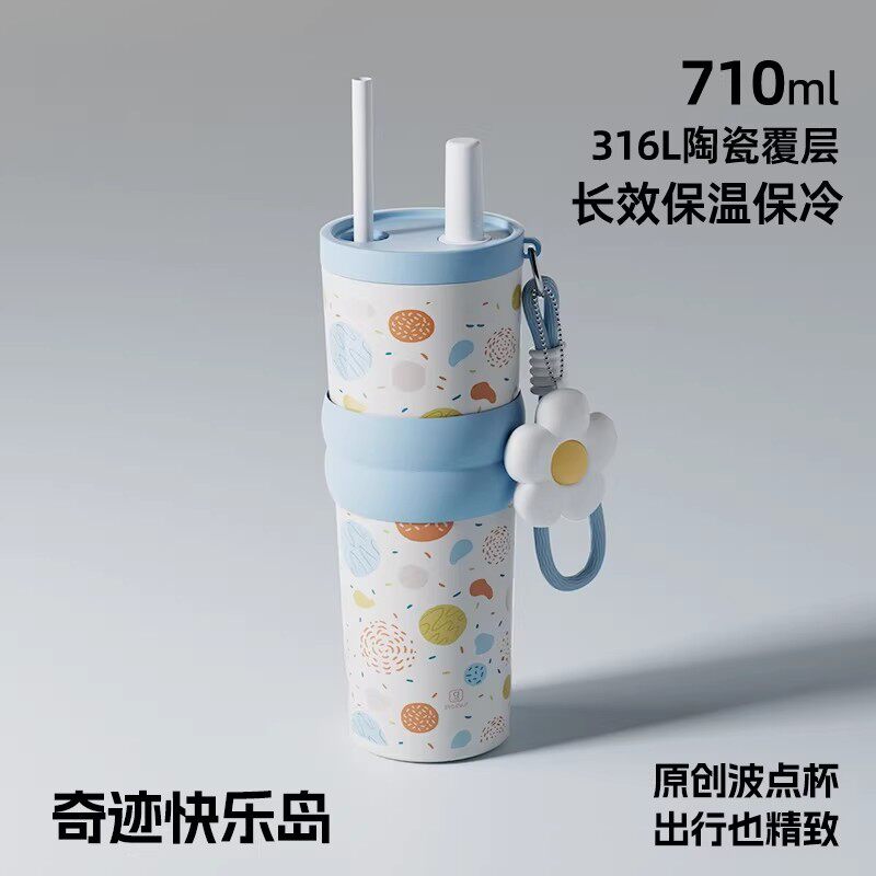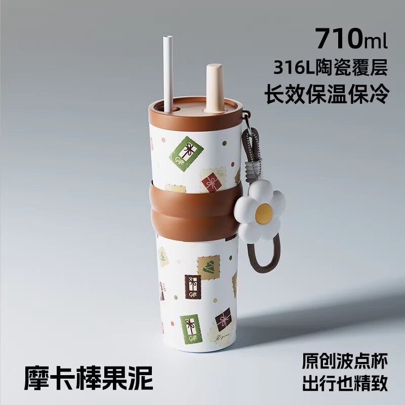 保温杯女士高颜值2025新款吸管杯咖啡杯女款外出小巧便携带水杯子