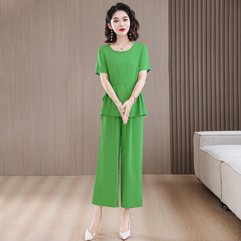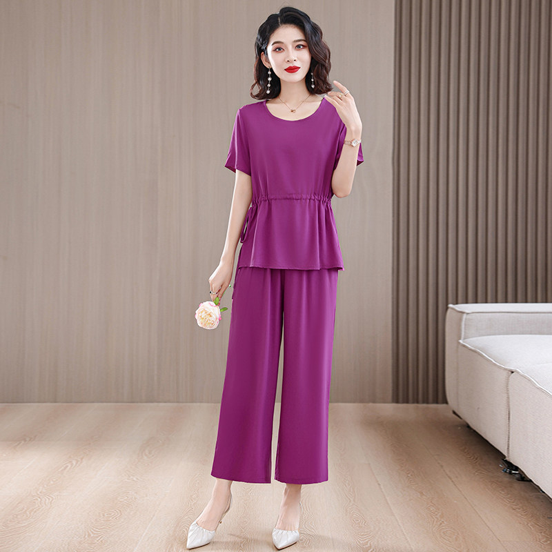 2026新款高端棉绸套装中年洋气妈妈夏装短袖宽松大码两件套减龄