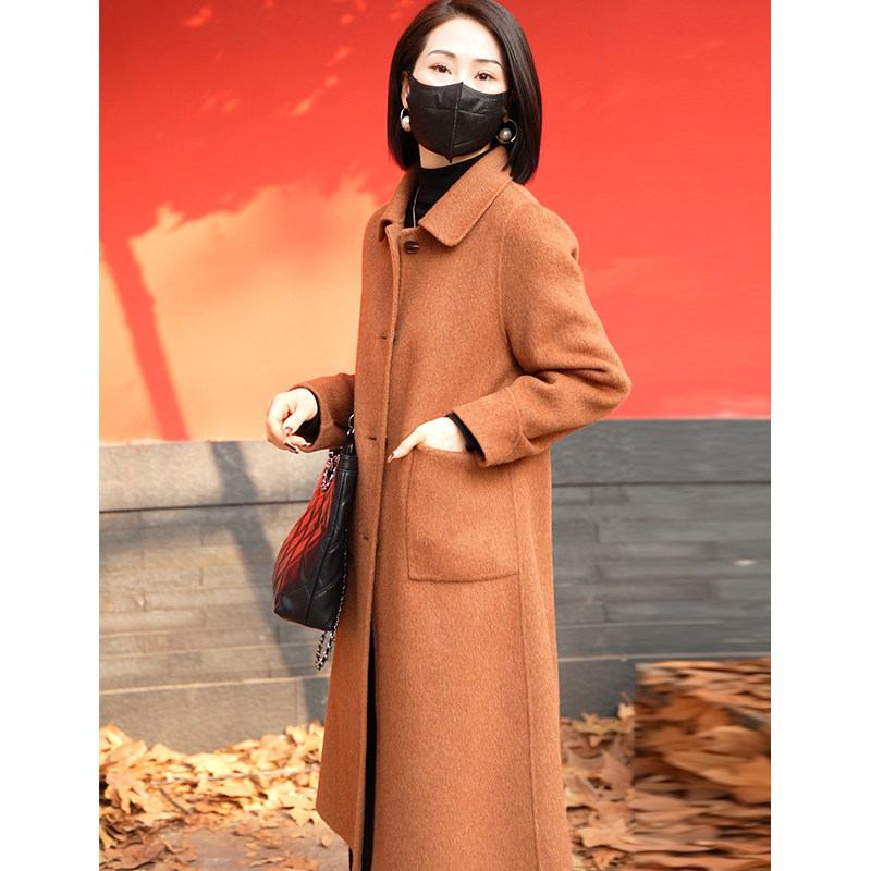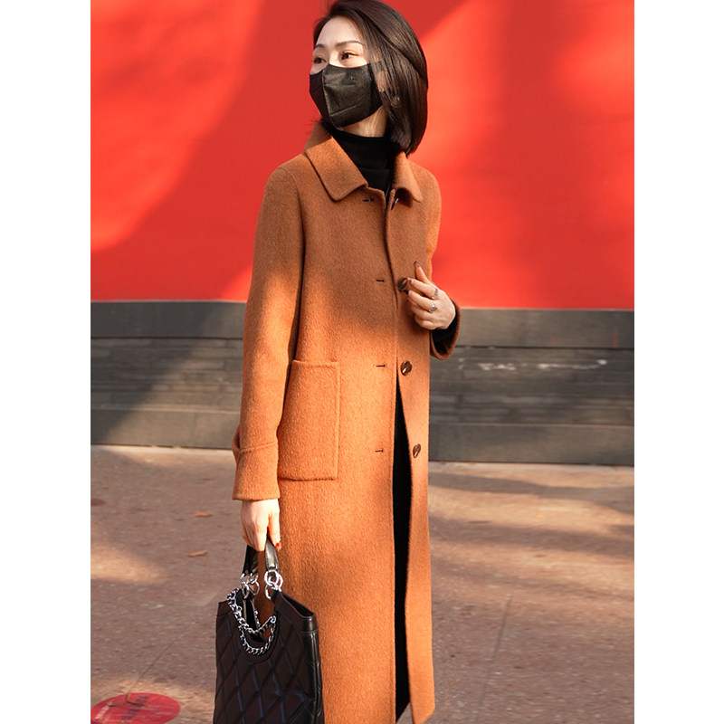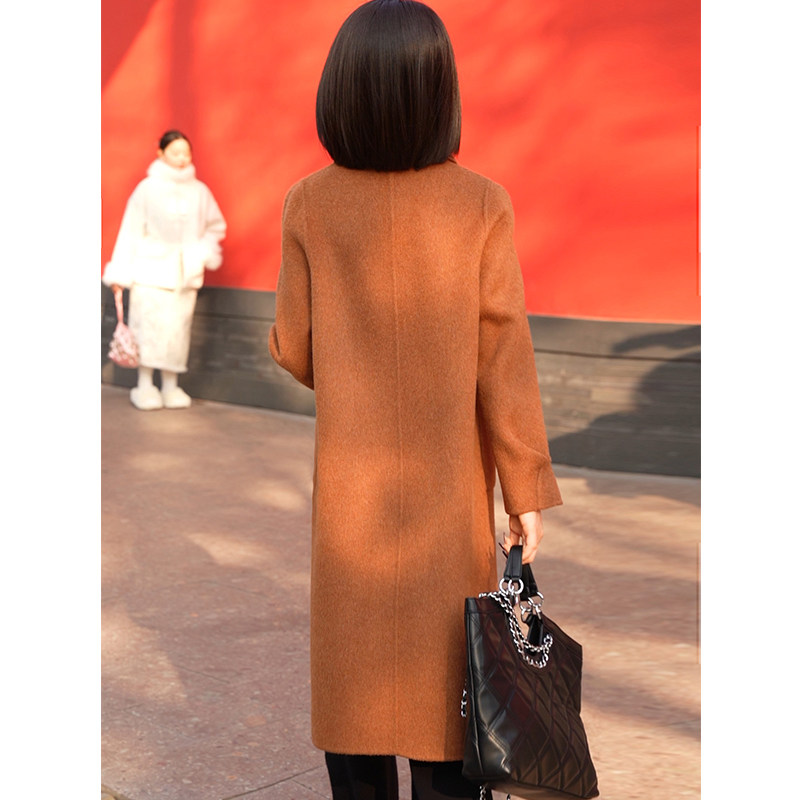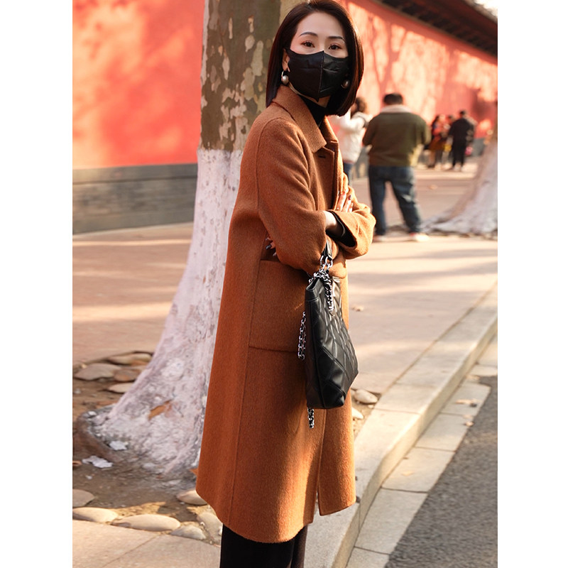 骆驼绒复古毛呢外套羊毛双面呢大衣女韩版气质中年妈妈2023年秋冬