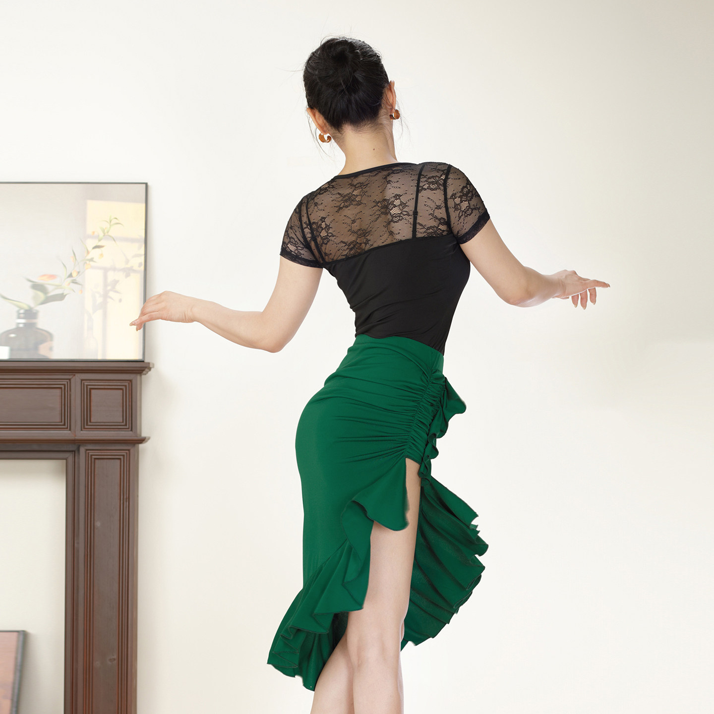 歌瑞亚拉丁舞女成人夏季新款高开叉包臀斜摆半裙练习功表演出服