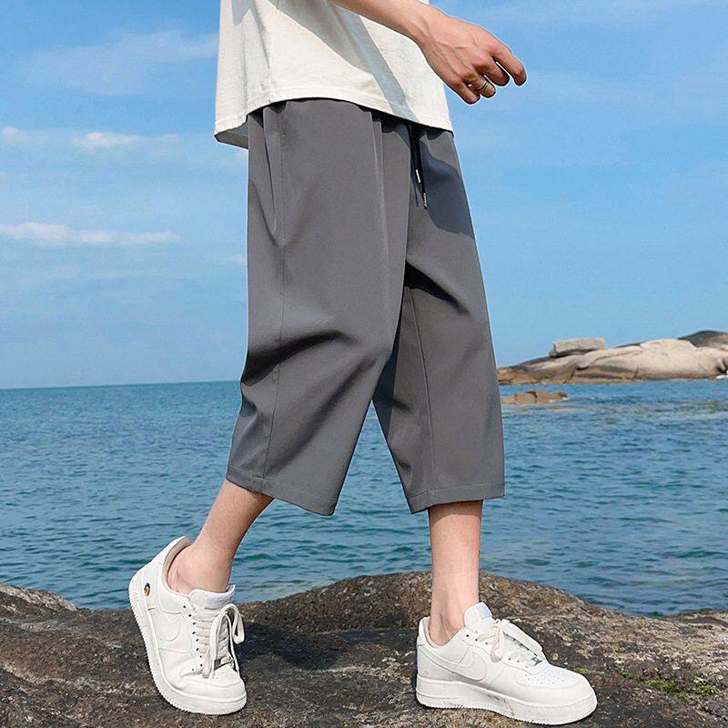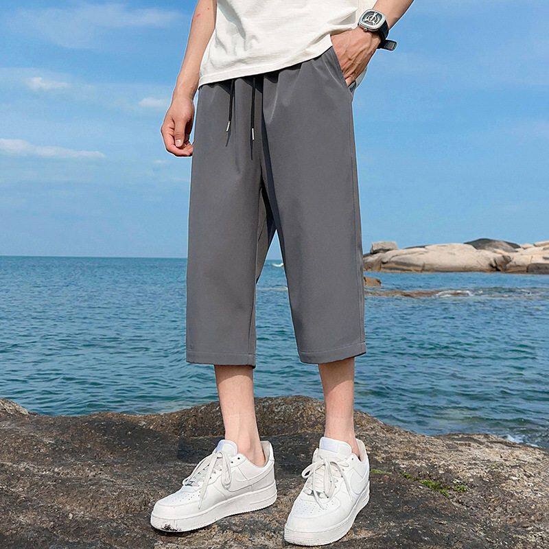 夏天七分裤子男款夏季冰丝薄款休闲裤男生款7分宽松运动短裤男士