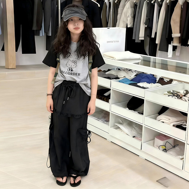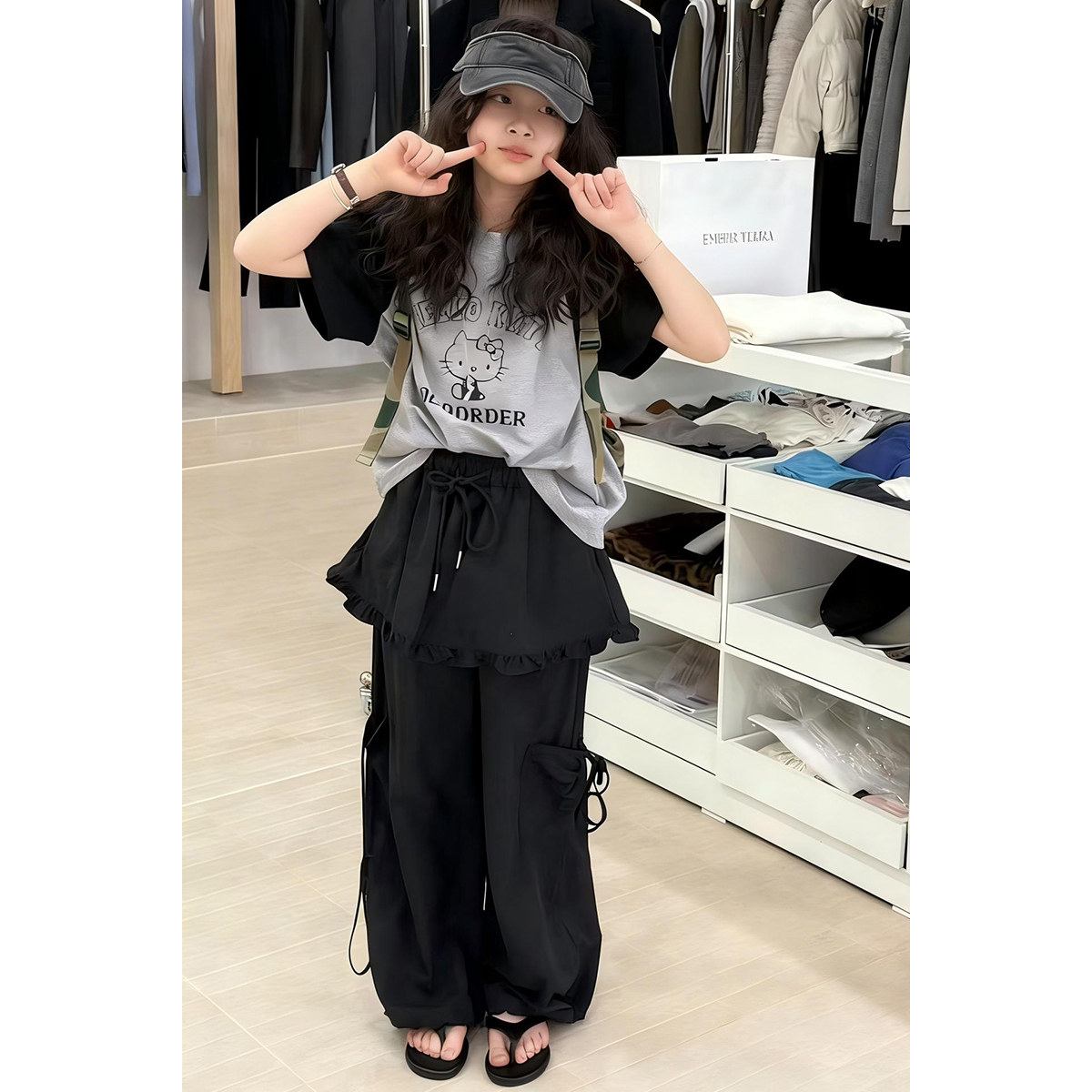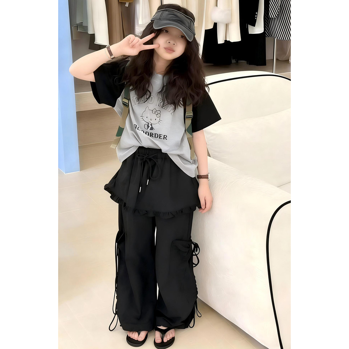 女童休闲套装洋气夏装2026超火儿童夏季中大童抽短袖松休闲两件套