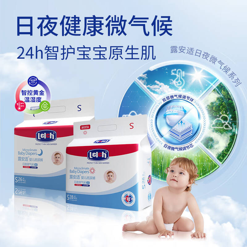 28片露安适u先日夜微气候婴儿纸尿裤拉拉裤超薄透气试用装体验装