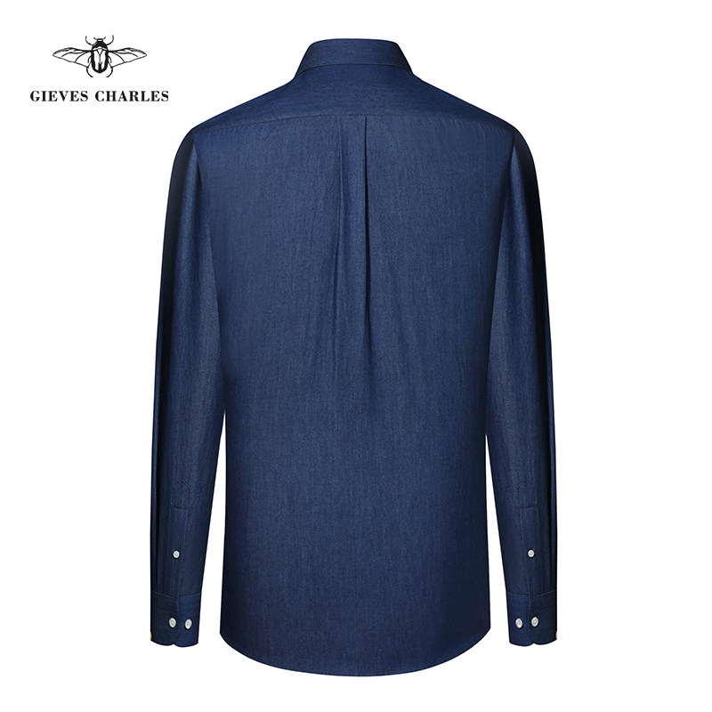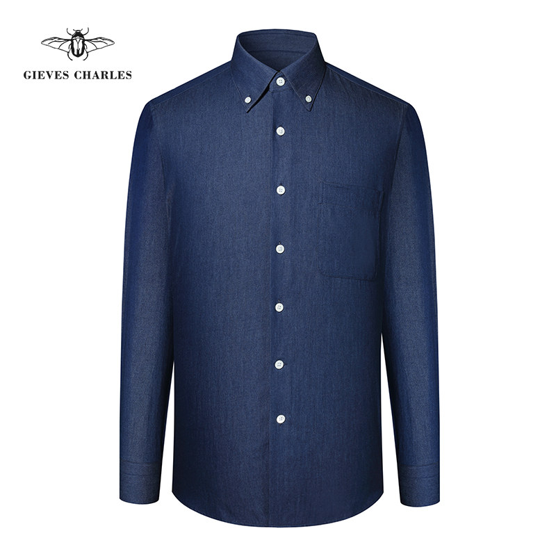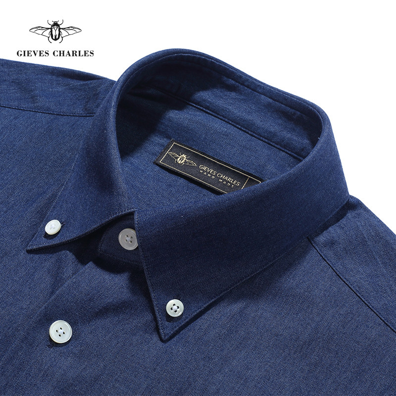 复古纽扣领牛仔衬衫男高级感男士休闲莫代尔长袖衬衣外套春秋