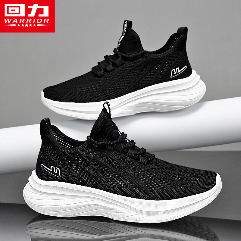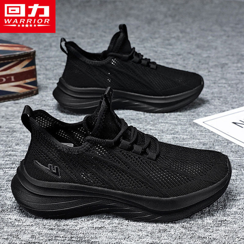 回力男鞋夏季薄款透气运动软底休闲跑步轻便网面防臭飞织黑色网鞋