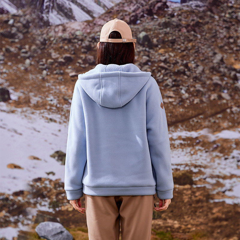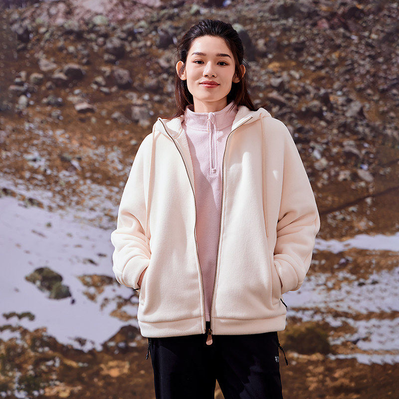 拓路者女款开衫宽松卫衣春秋新款加绒加厚连帽长袖拉链摇粒绒外套