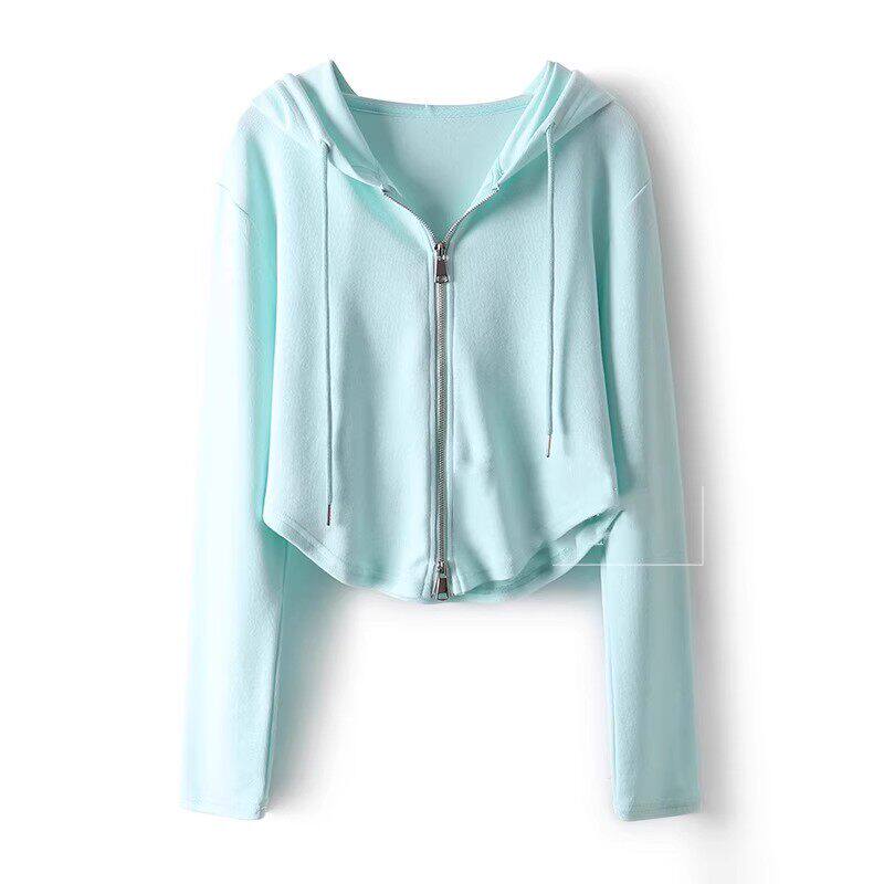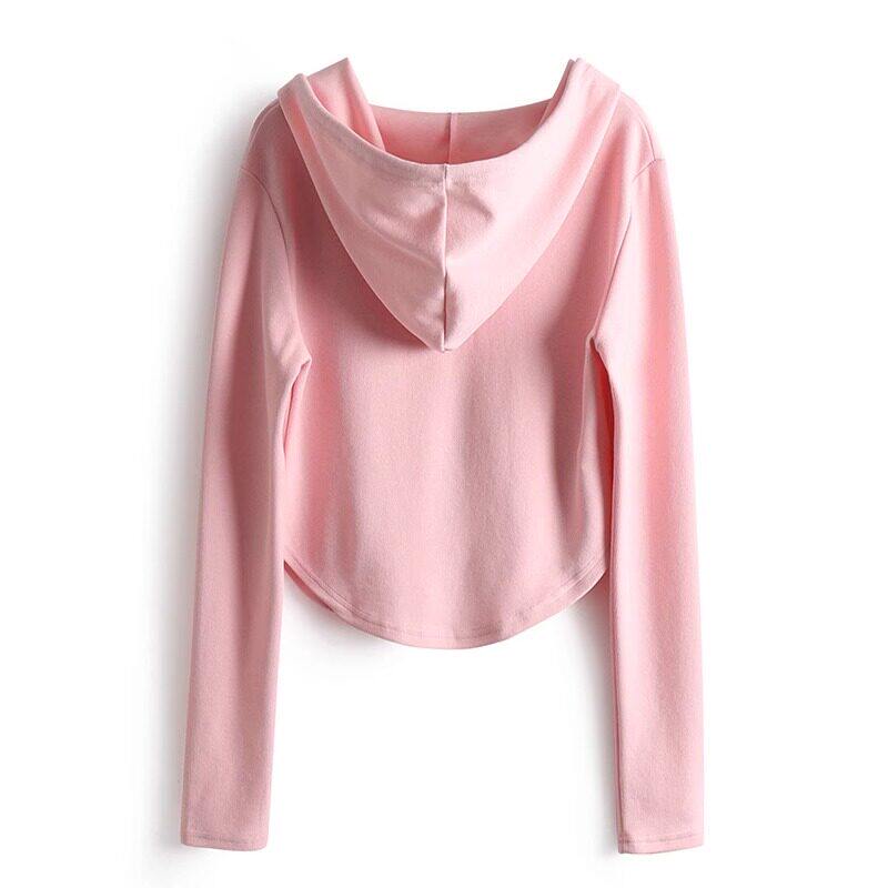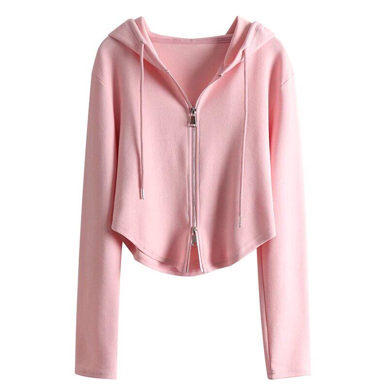 粉色连帽长袖厚棉T女款2025春秋新款运动休闲 开 衫外套修身短款