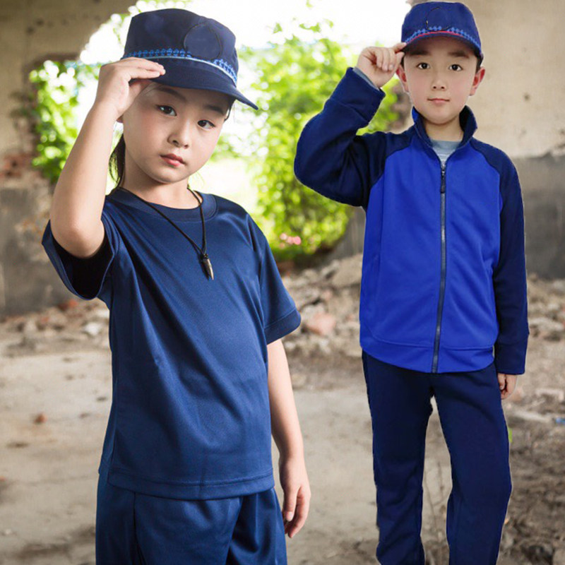 儿童消防短袖体能训练服小孩消防员蓝色T恤小朋友春秋户外运动服
