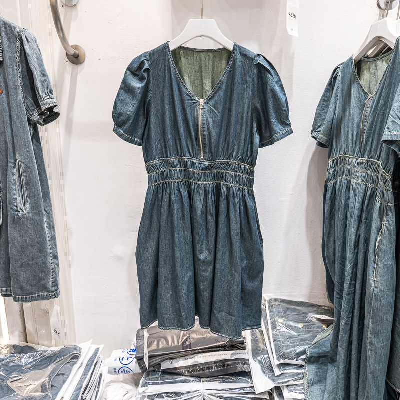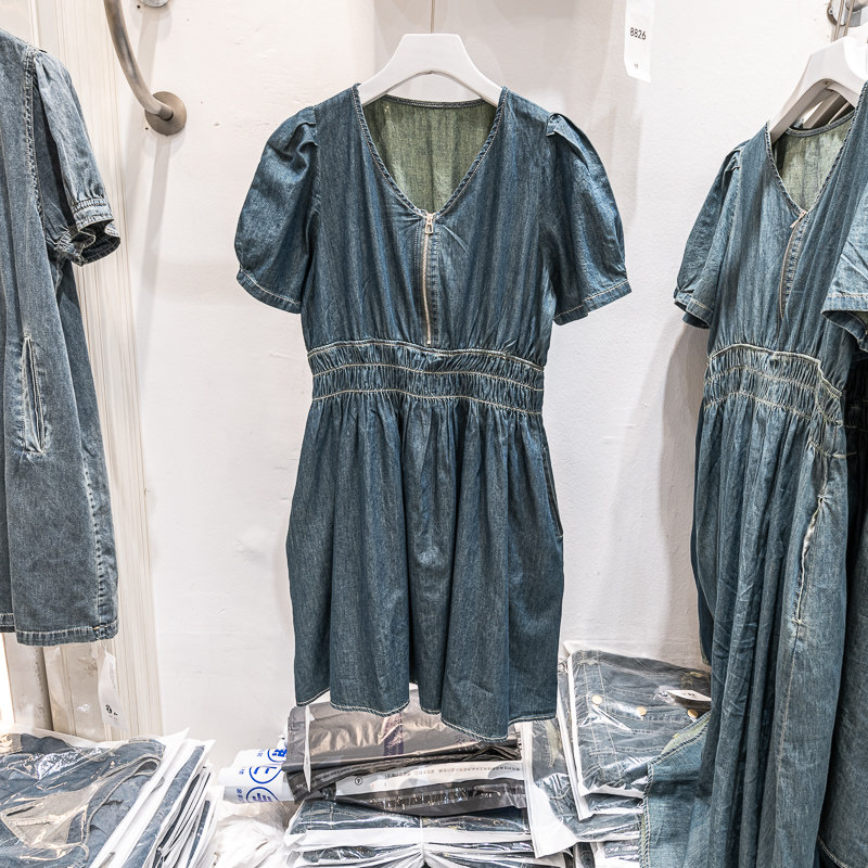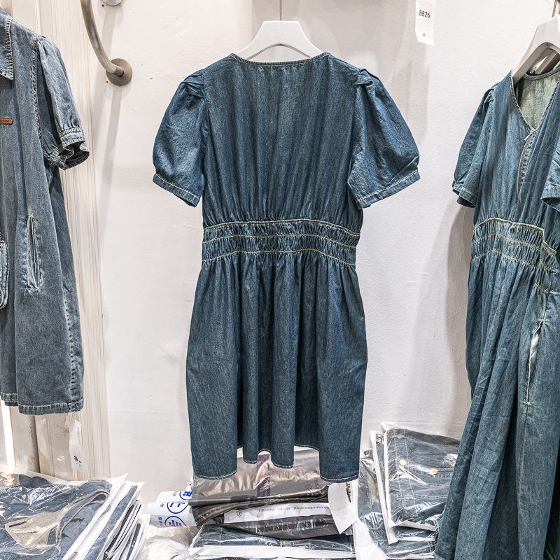 V领夏季薄款天丝牛仔裙松紧收腰连衣裙 新款女裙子休闲小个子短裙