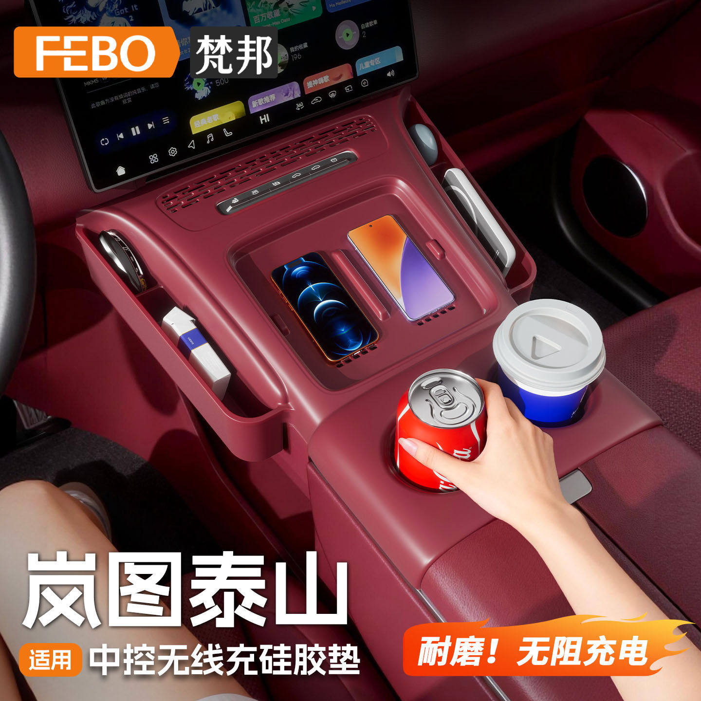 适用岚图泰山中控无线充硅胶垫防护收纳盒防滑汽车内装饰用品配件