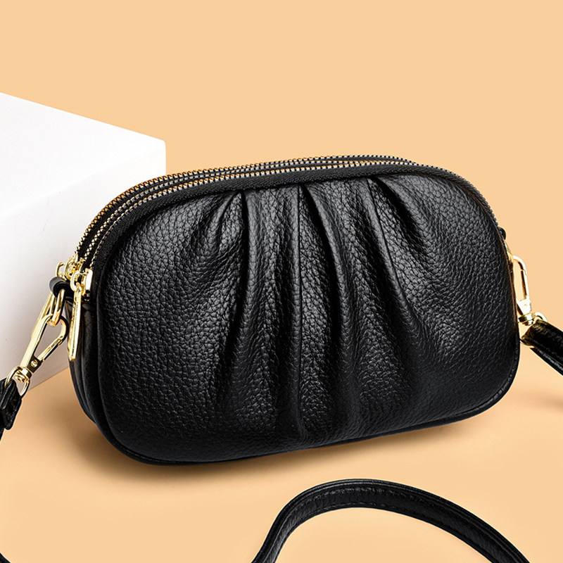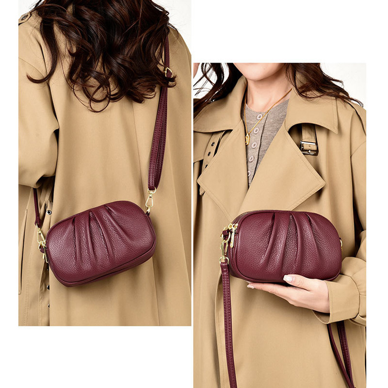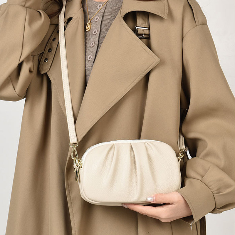 包包女士2026新款椭圆褶皱斜挎包多层口袋休闲小挎包通勤妈妈包