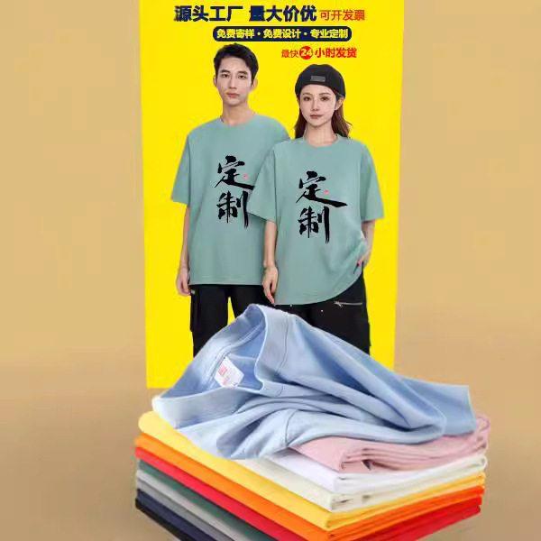 纯棉t恤定制logo圆领短袖企业工作服印字班服聚会服广告文化衫diy