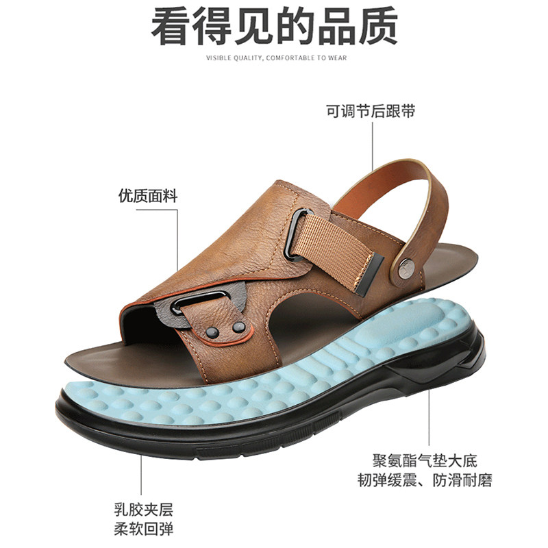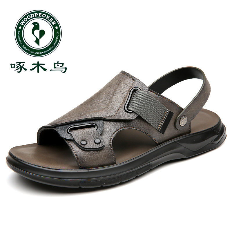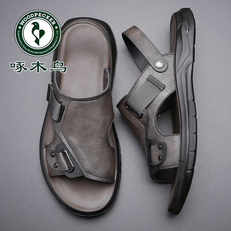 啄木鸟凉鞋男款2026夏季真皮休闲开车软底沙滩鞋两用外穿凉拖鞋子