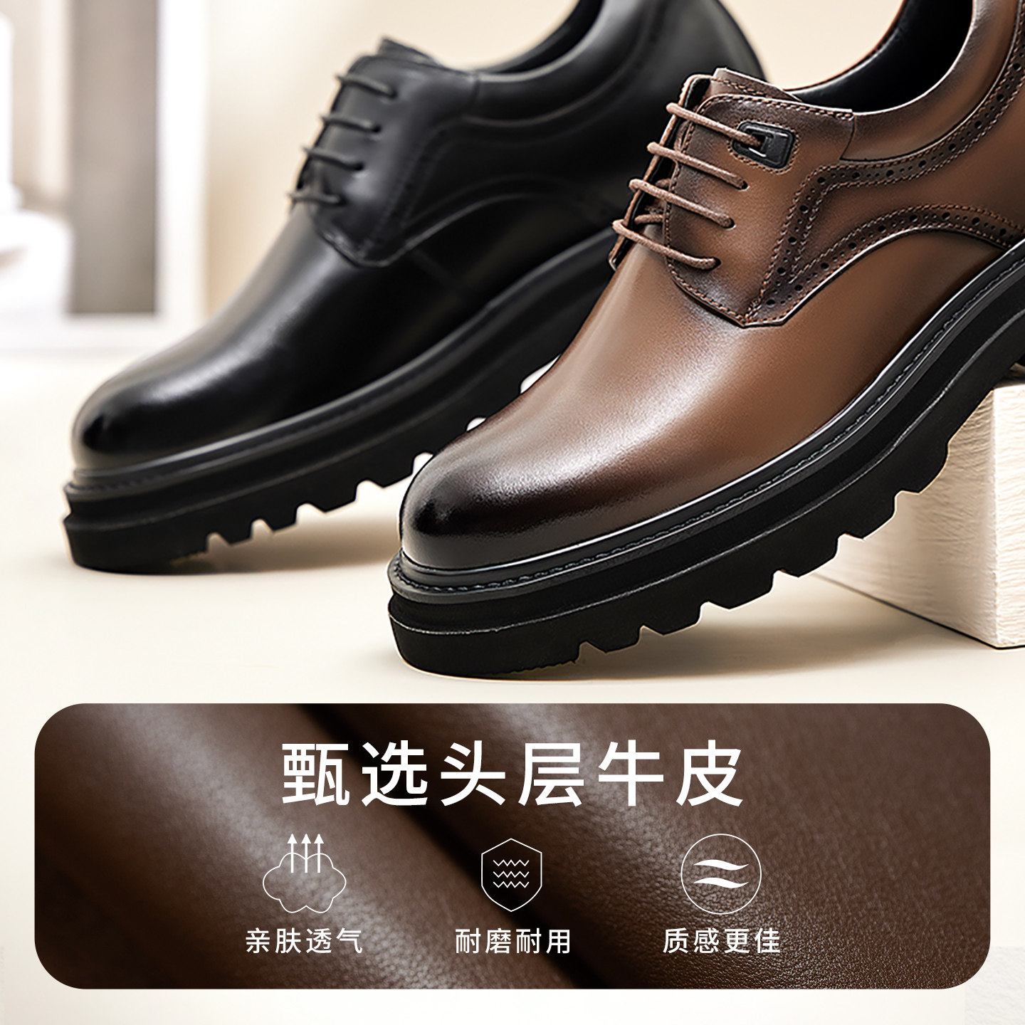 高哥内增高皮鞋8cm厚底商务真皮男鞋春季新款轻便正装鞋10cm