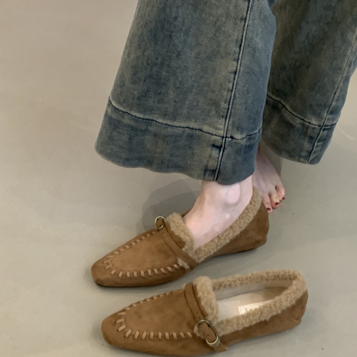 复古内增高加绒毛毛鞋女2025秋冬小香风英伦风羊羔毛一脚蹬乐福鞋