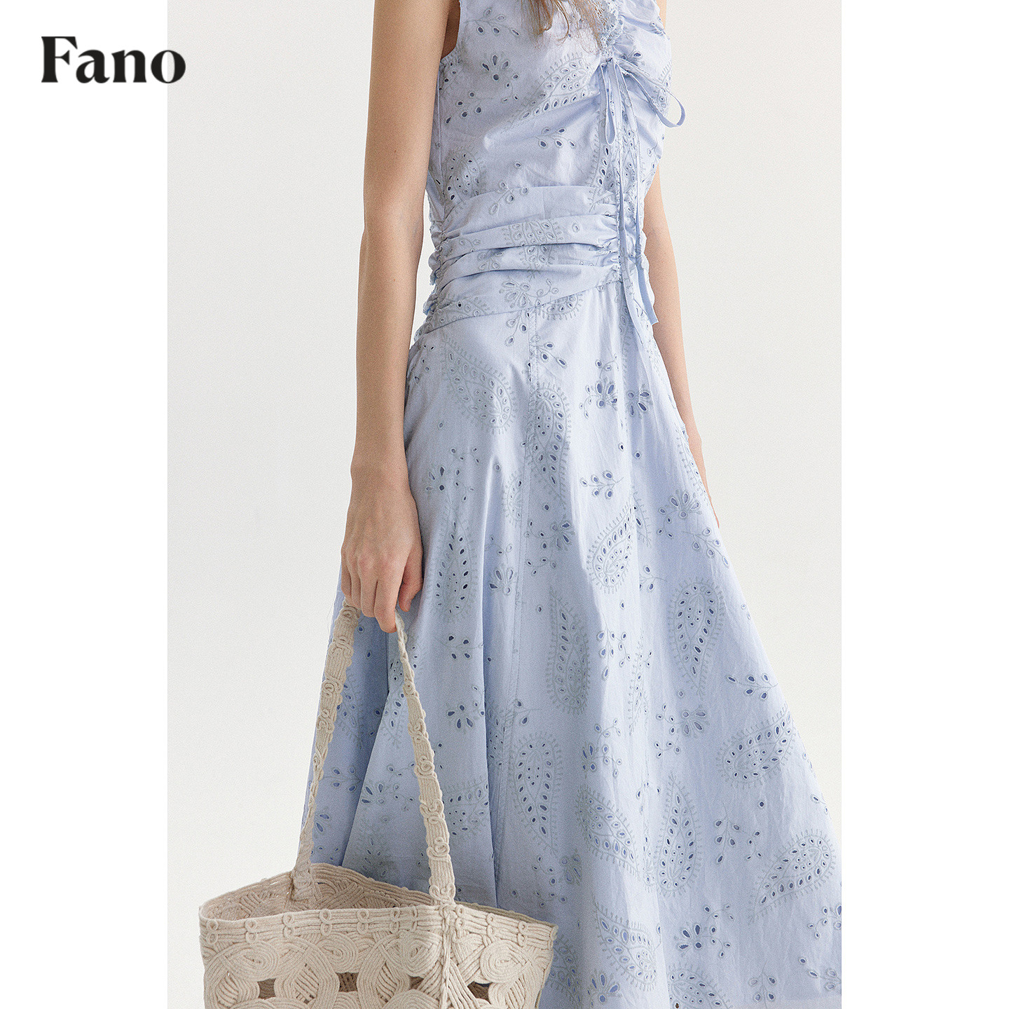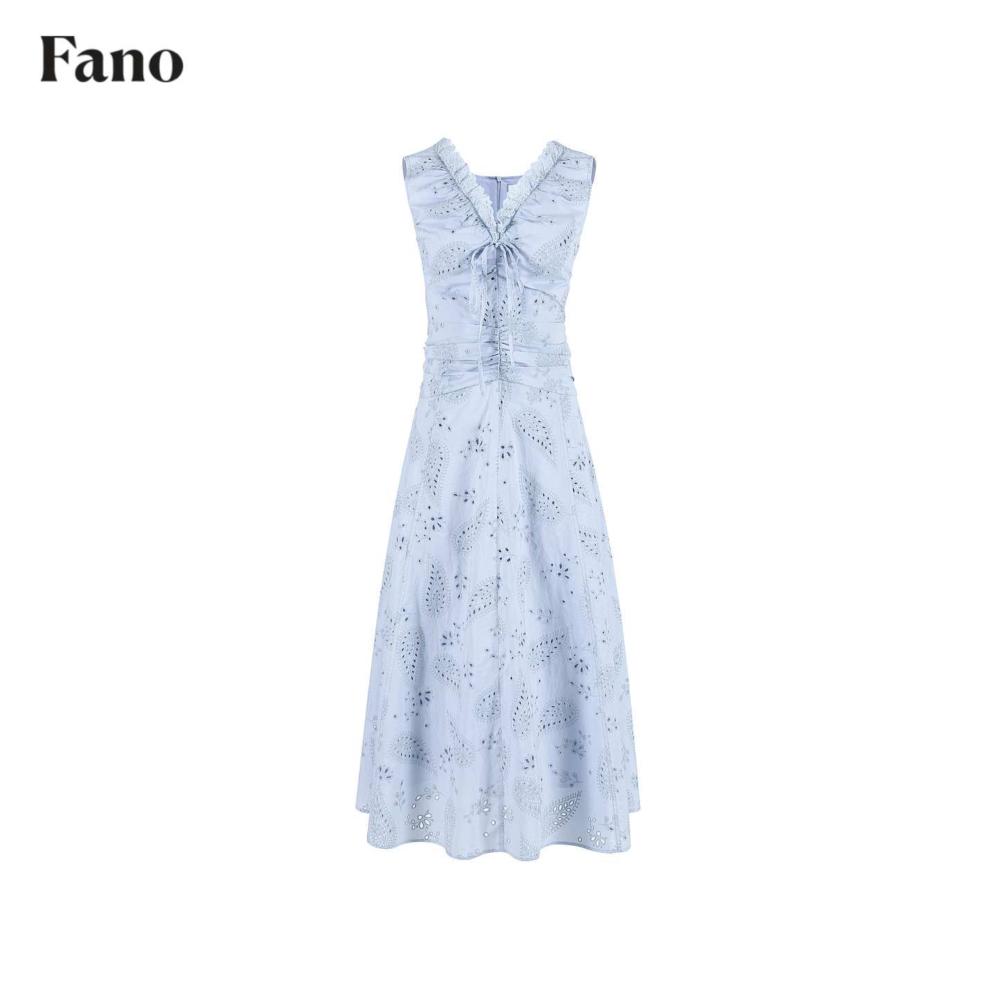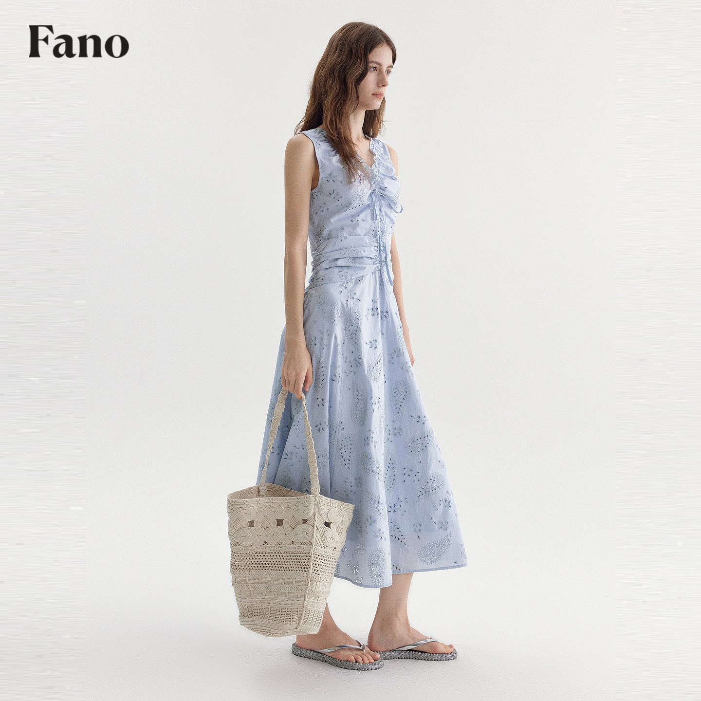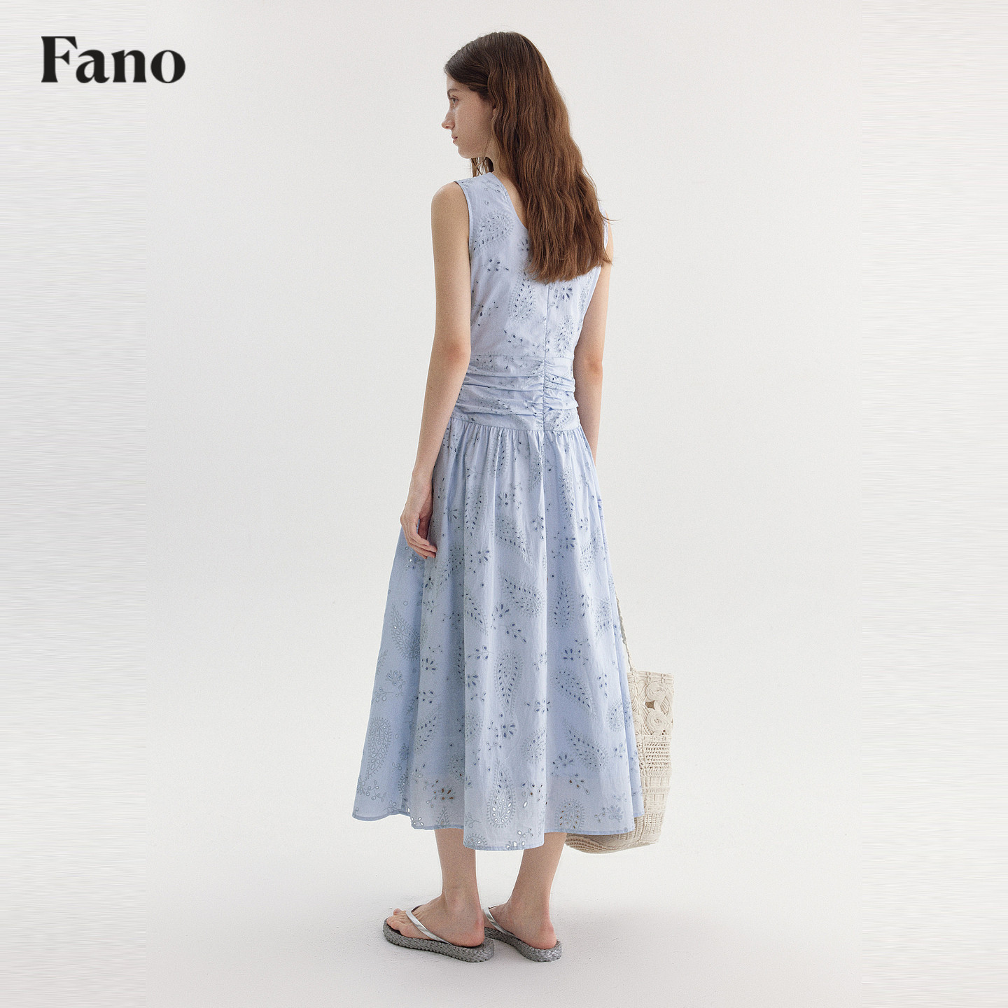 范洛Fano 法式慵懒感镂空印花连衣裙女2026春季新款收腰无袖长裙