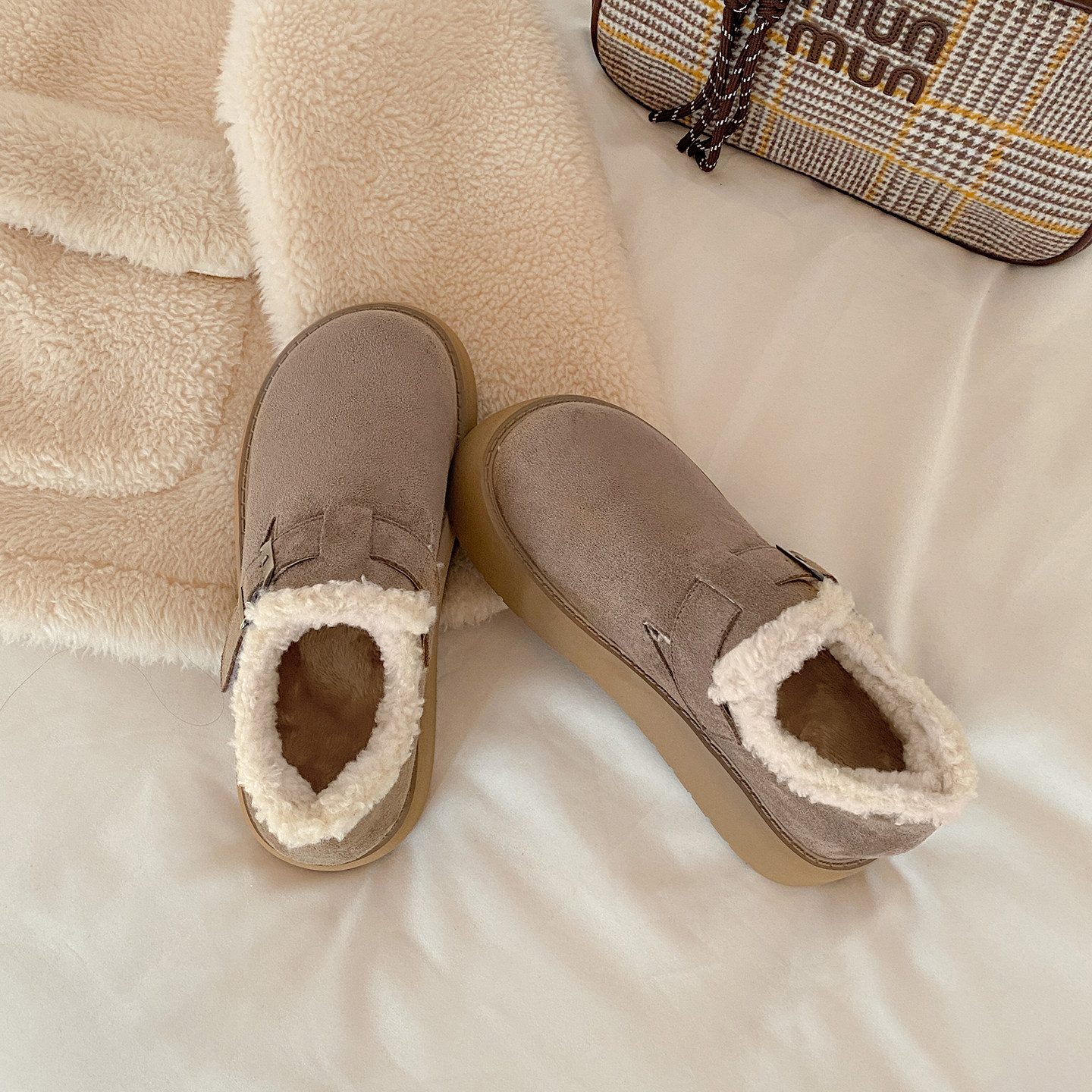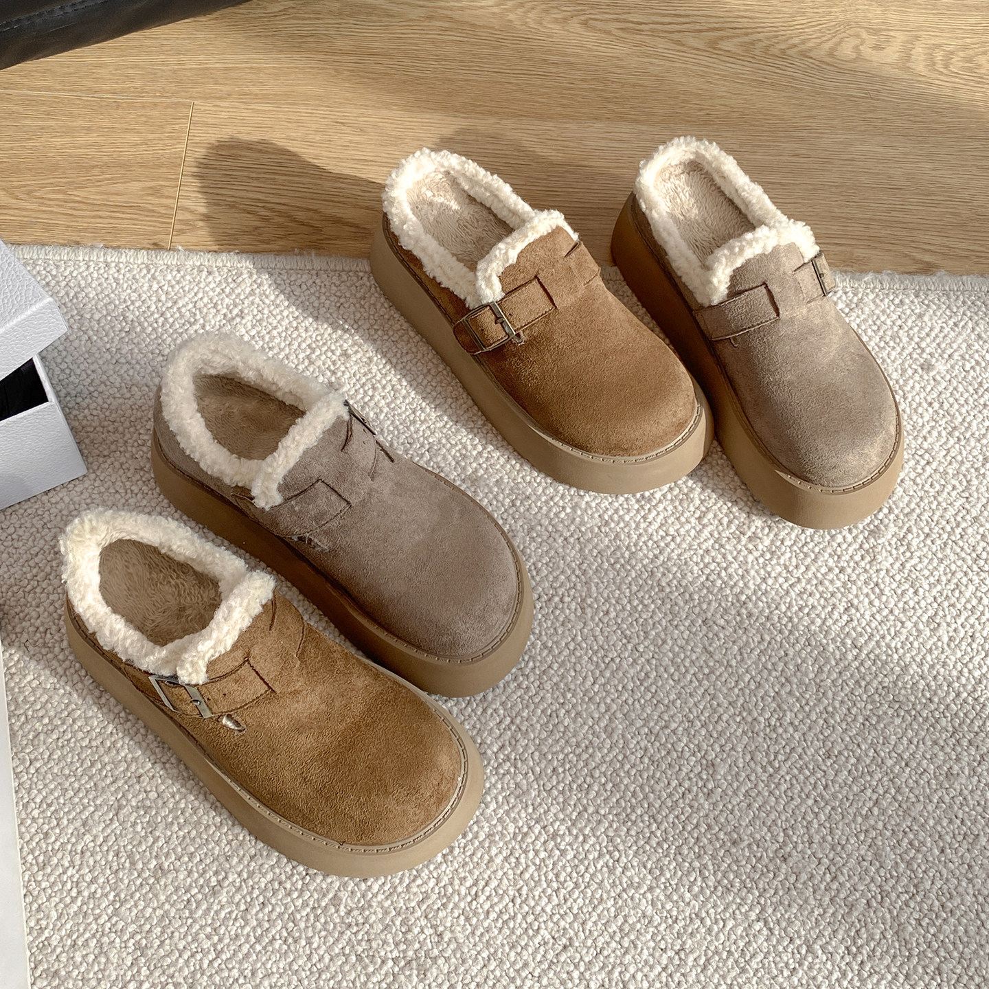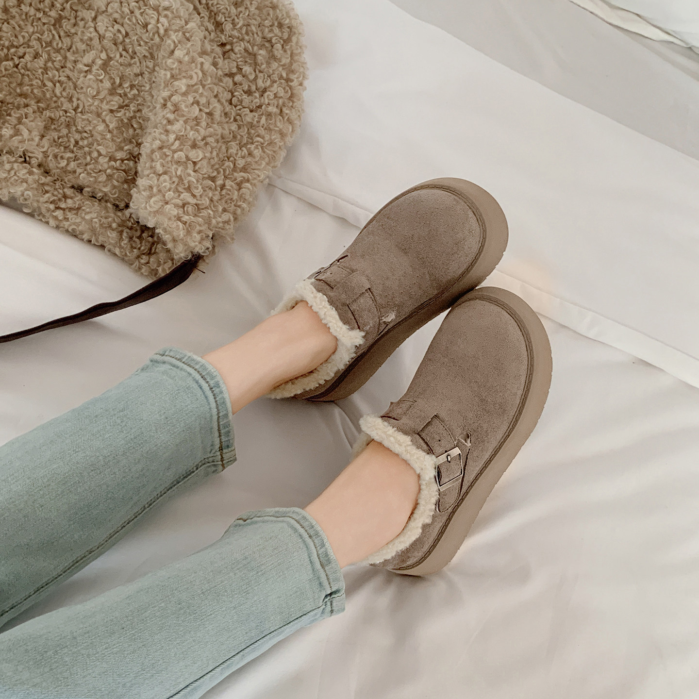 加绒保暖德训鞋女厚底勃肯鞋小码313233内增高休闲棉鞋冬季新款女