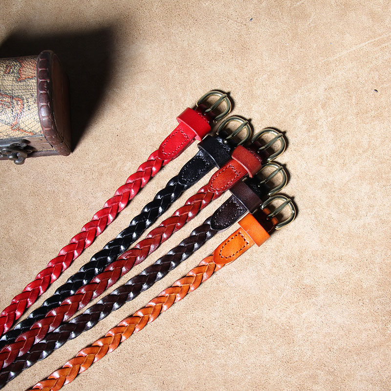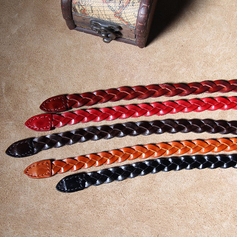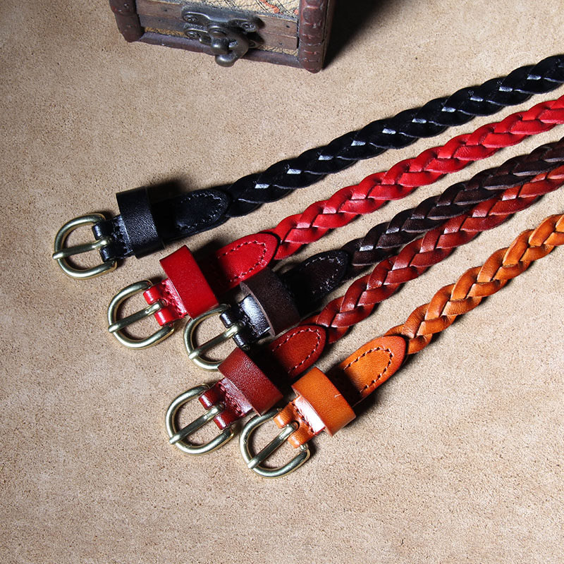 编织女士头层牛皮小皮带 细腰带 女 打结 纯牛皮小编织腰带 软