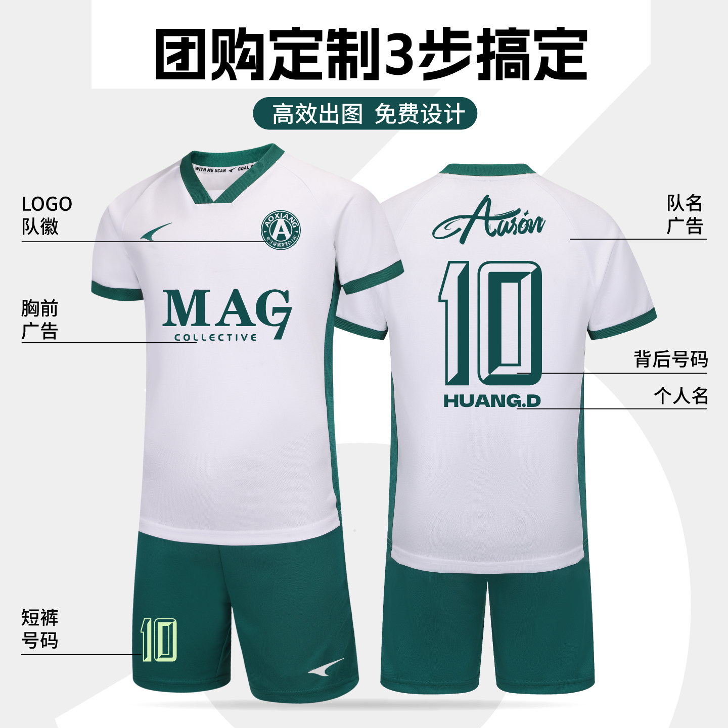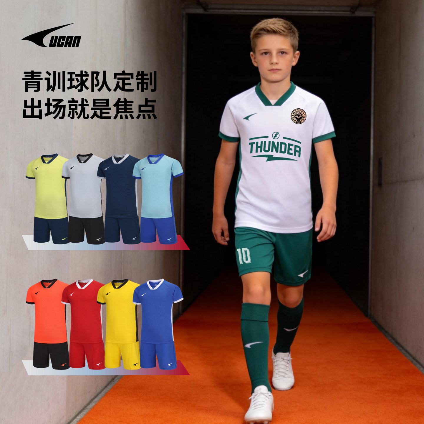 Ucan锐克青少年儿童足球训练服比赛球服童装球衣队服套装可定制