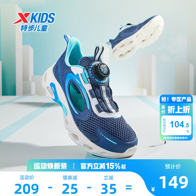 特步童鞋夏季新款中大童网面透气儿童运动鞋子男童旋钮扣软底跑鞋