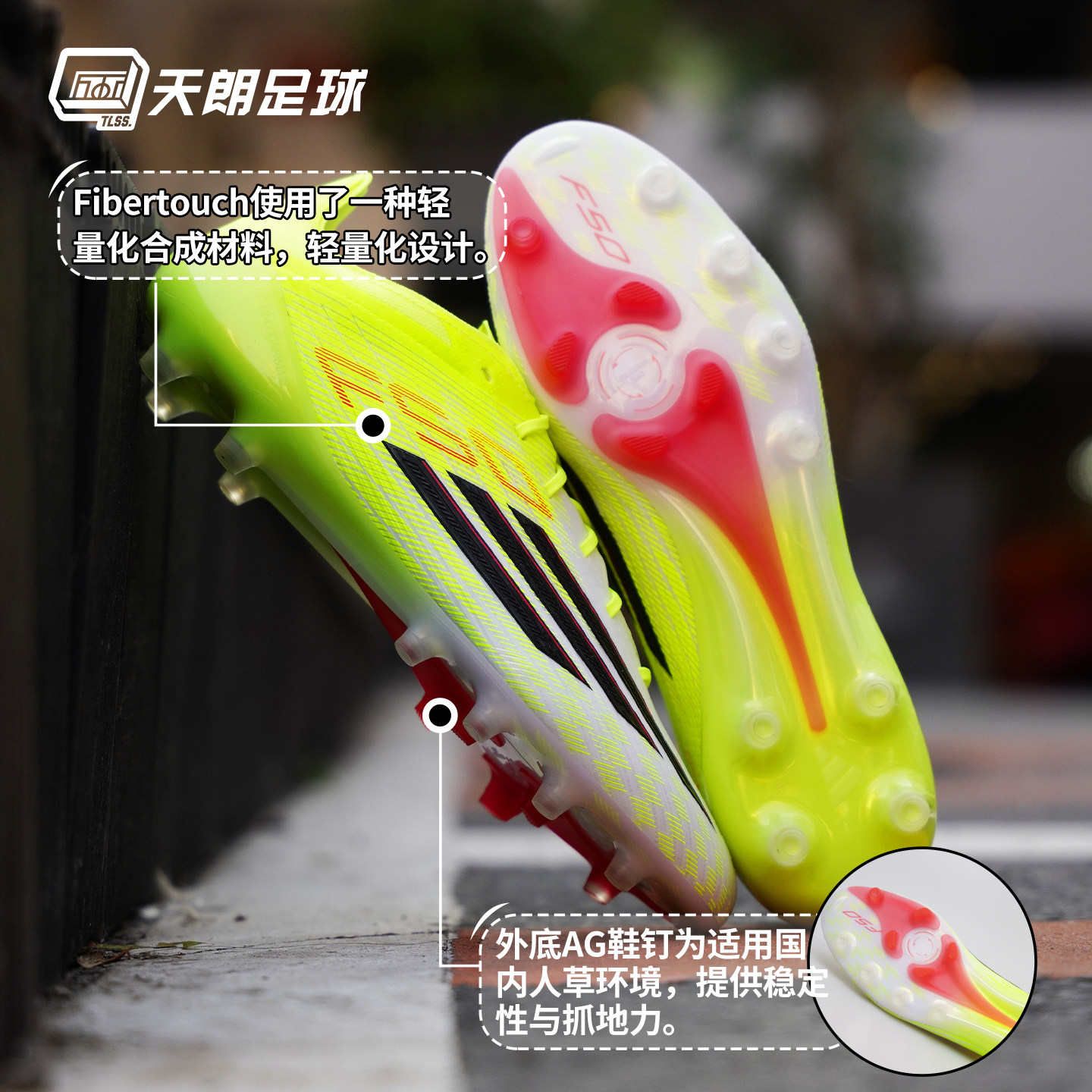 天朗足球Adidas阿迪达斯F50 ELITE AG高端短钉人草足球鞋JR6464