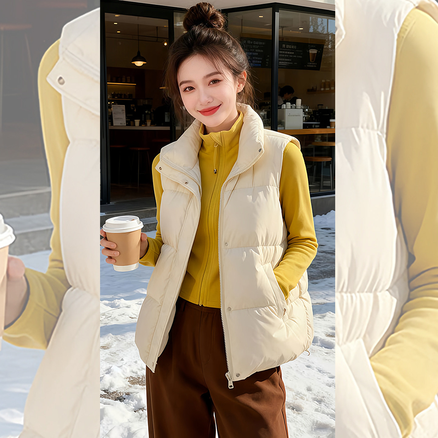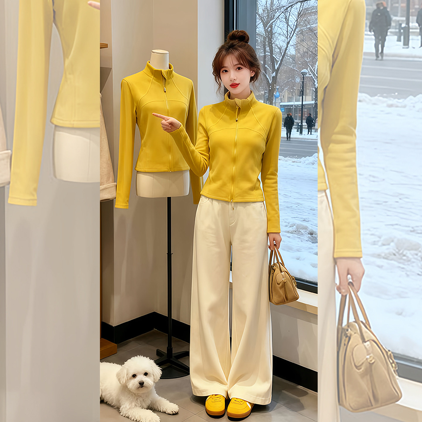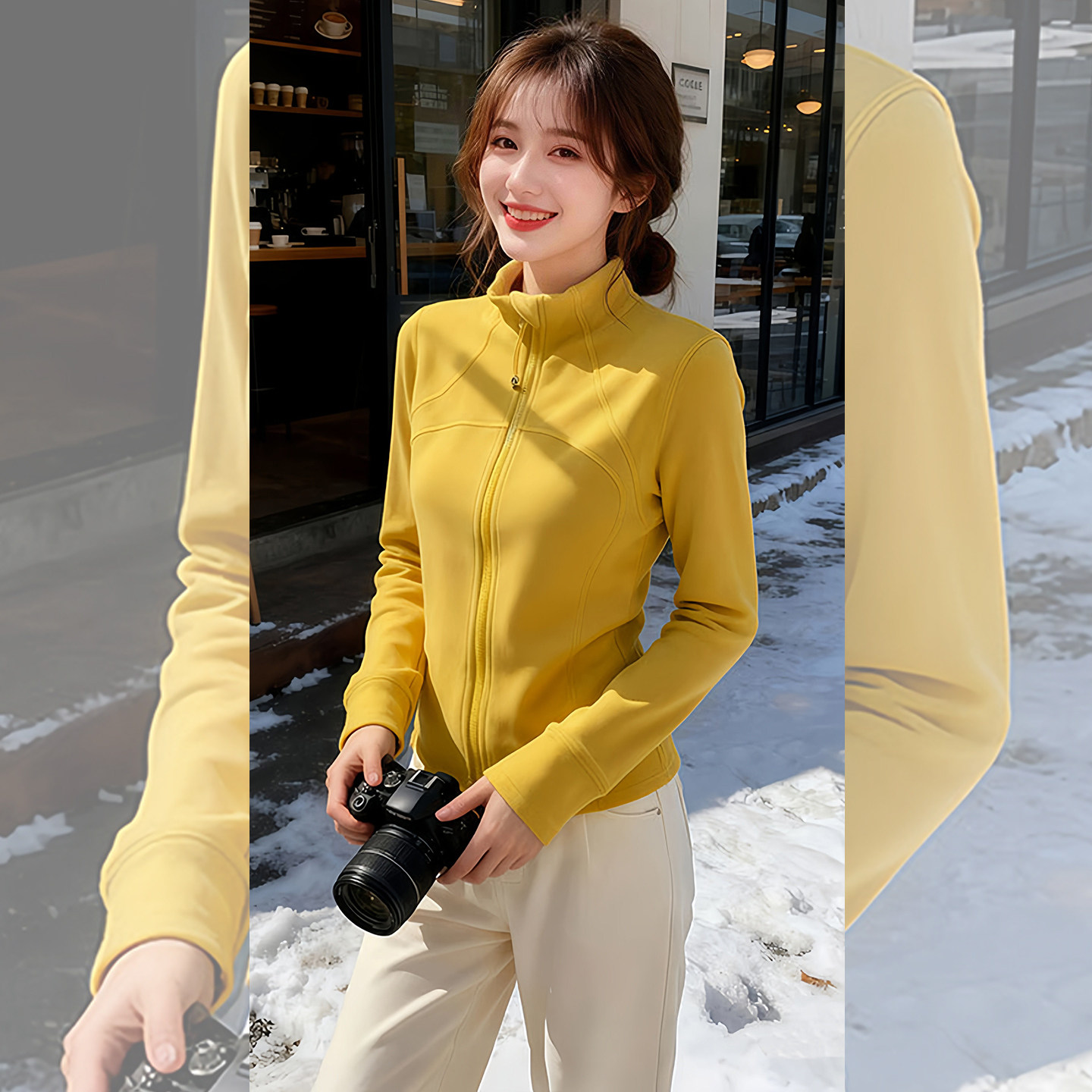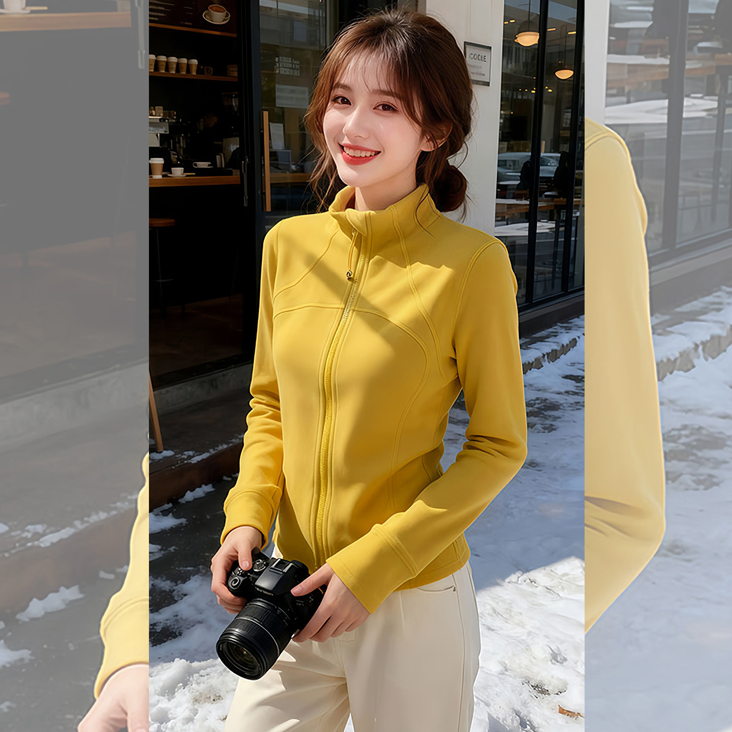 一眼韩女~运动休闲风立领拉链修身上衣黄色2026早春新款女装长袖