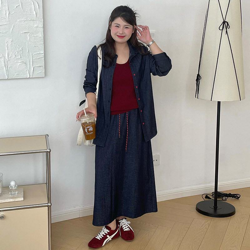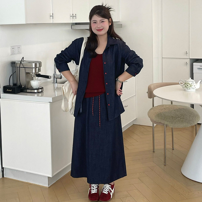 大码女装休闲气质牛仔套装2026春款胖mm开衫女半身裙两件套