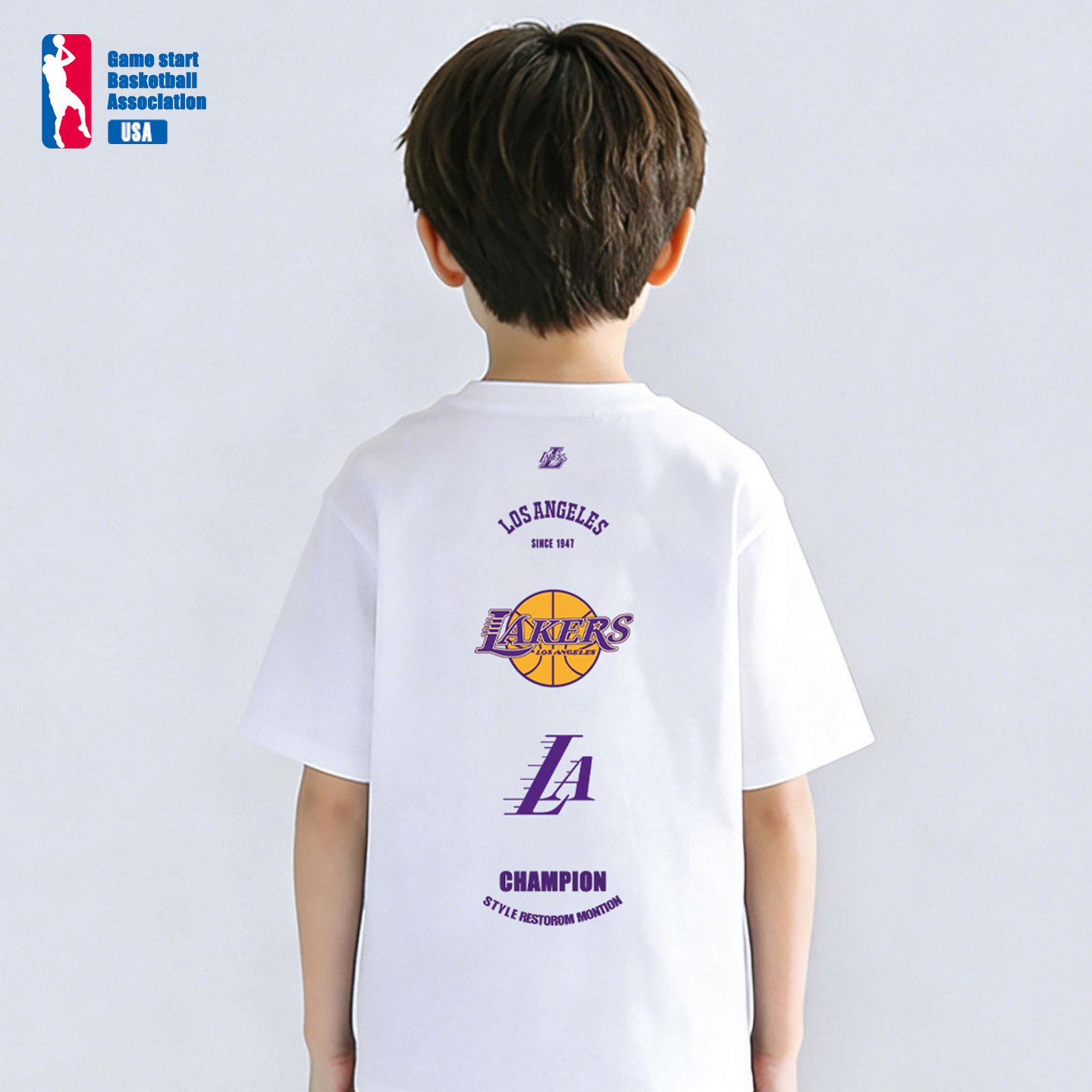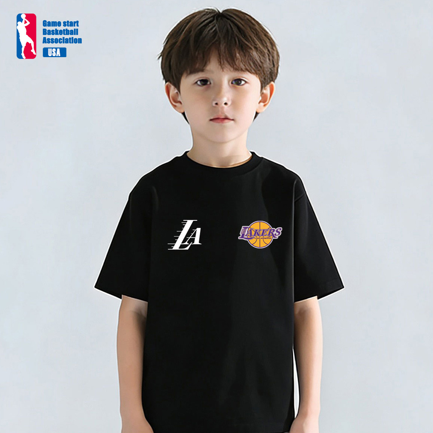 美式湖人队城市印花篮球儿童运动纯棉短袖童装球衣T恤美式训练服