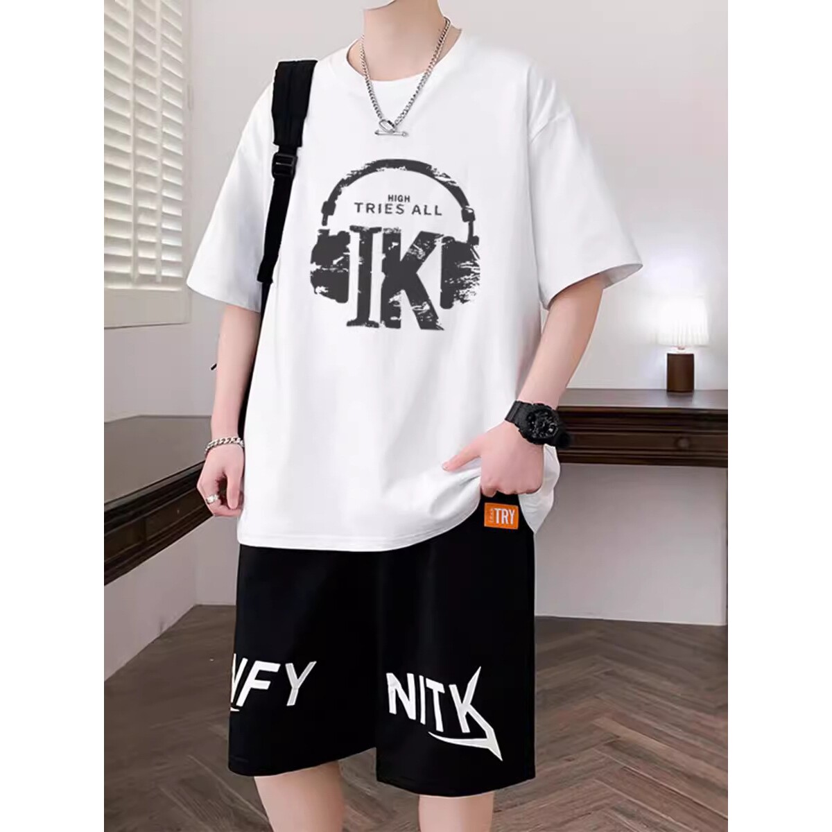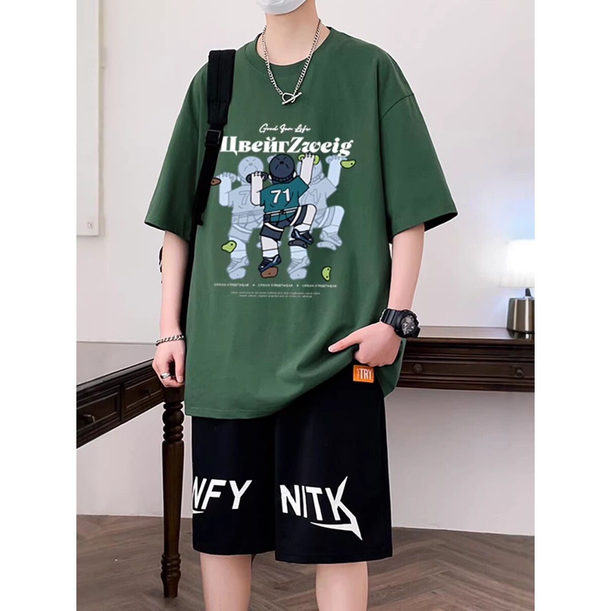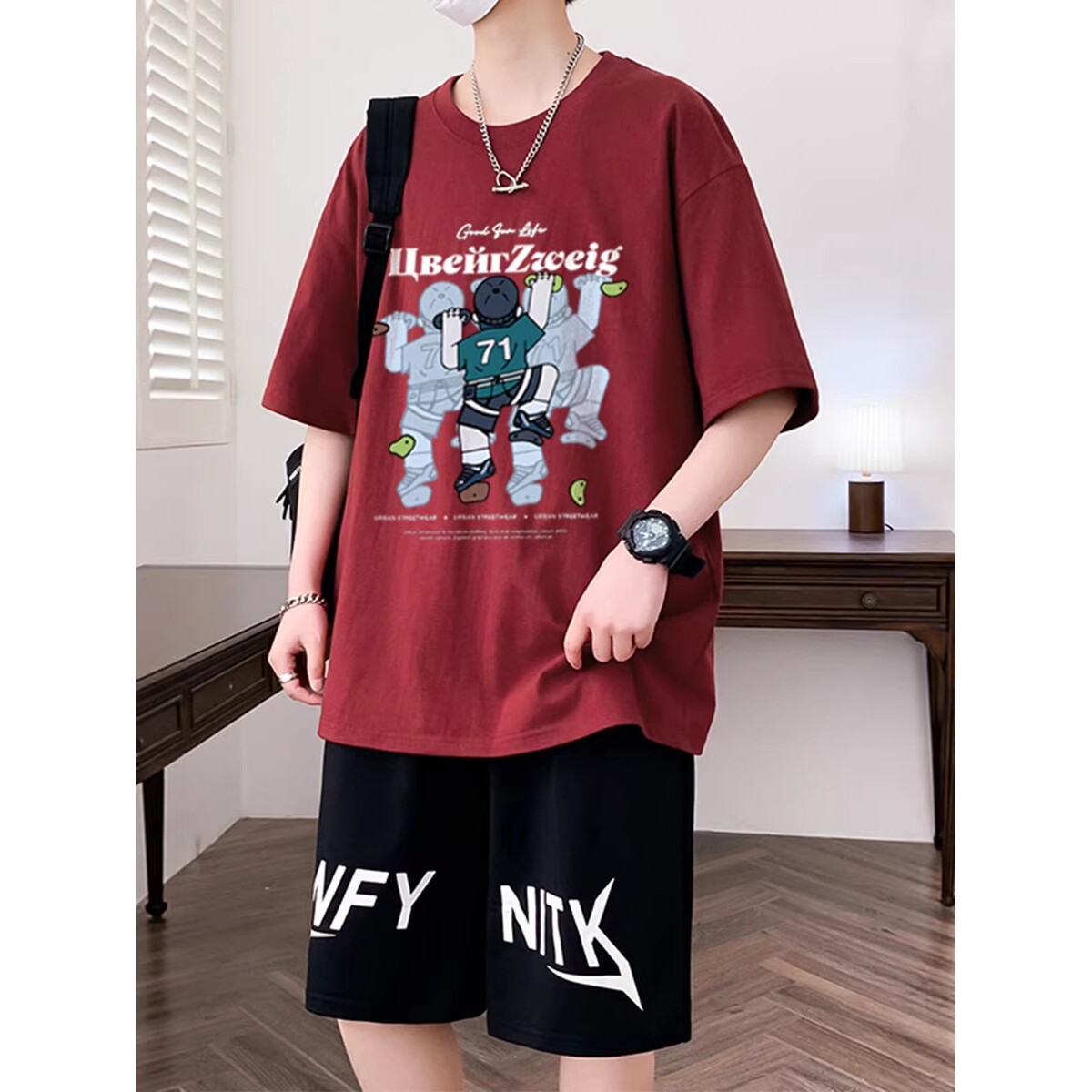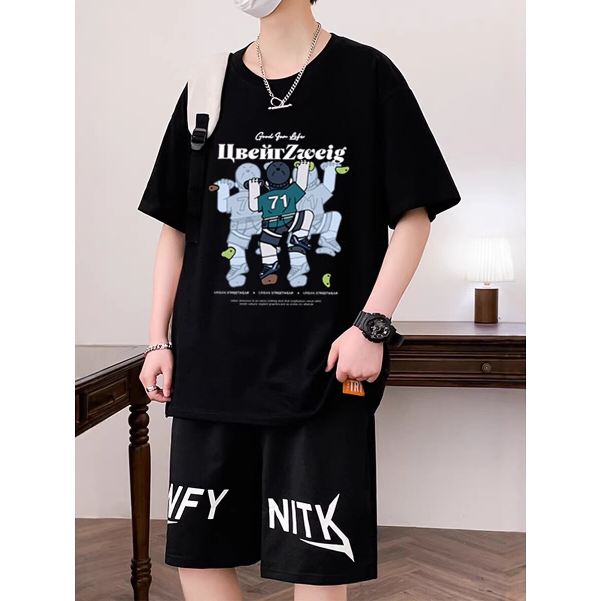 德国青少年纯棉短袖t恤-岁初中学生男孩帅气运动套装大童夏装