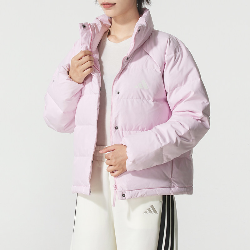 Adidas阿迪达斯女款粉色羽绒服2025春季保暖防风立领保暖羽绒外套
