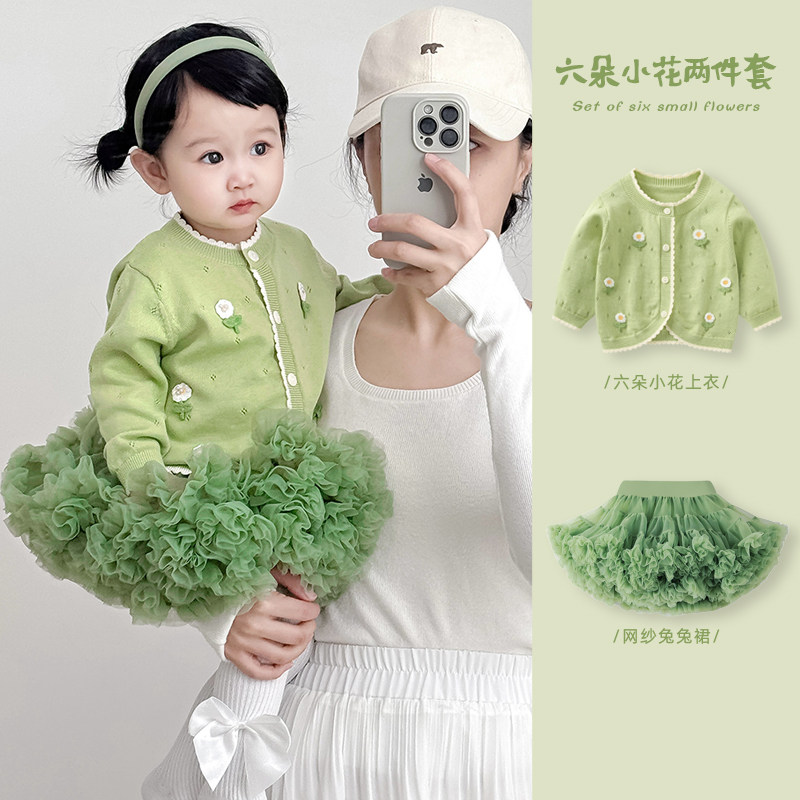 女童套装2026春装针织外套兔兔裙婴儿公主裙洋气裙子女宝宝蓬蓬裙