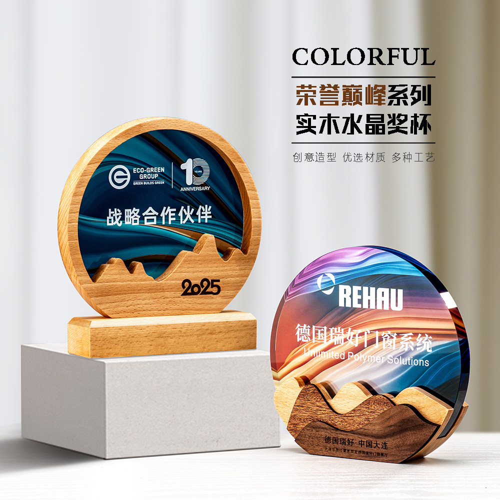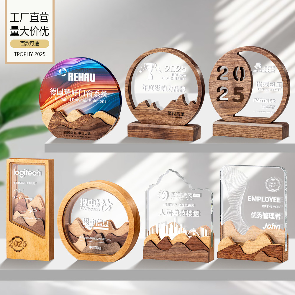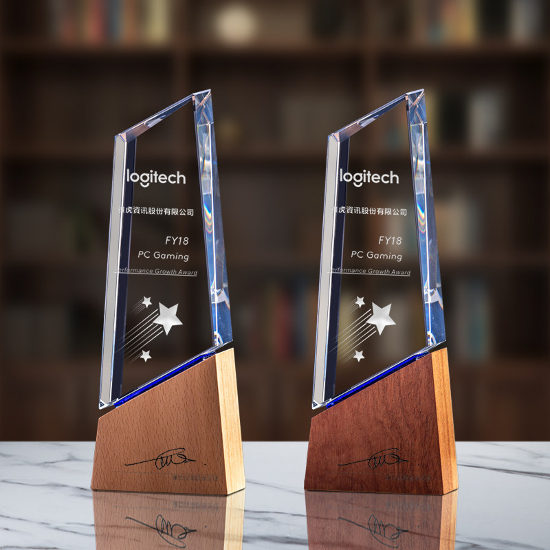 高档大气实木质年会水晶奖杯订制创意定制定做优秀员工奖牌授权牌