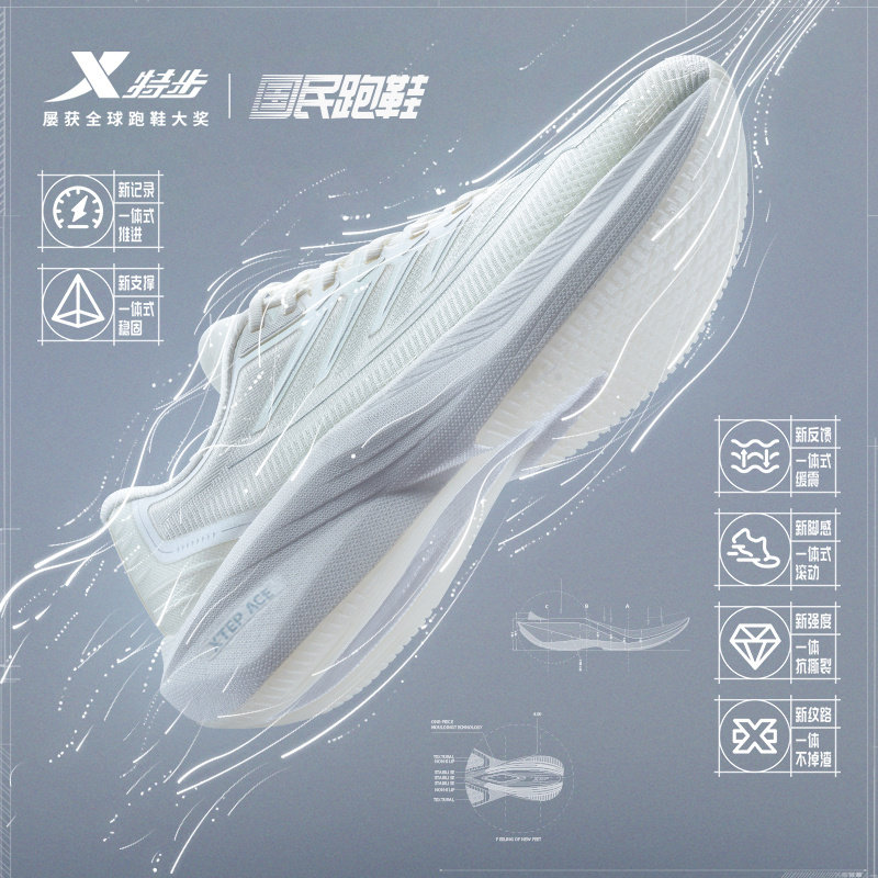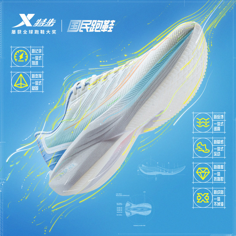 特步一体成型丨跑步鞋男鞋体育中考专用鞋体测情侣竞速跑鞋女鞋子